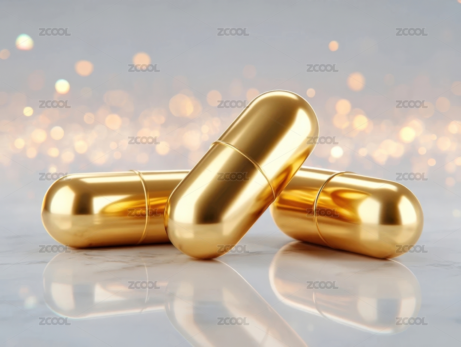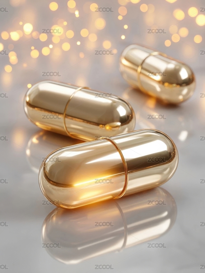金色胶囊药物维生素D鱼油医疗健康概念插图
