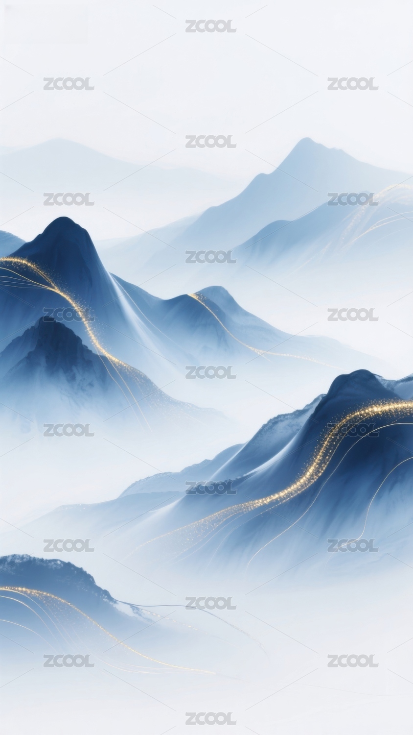 蓝色山峦国风山水画