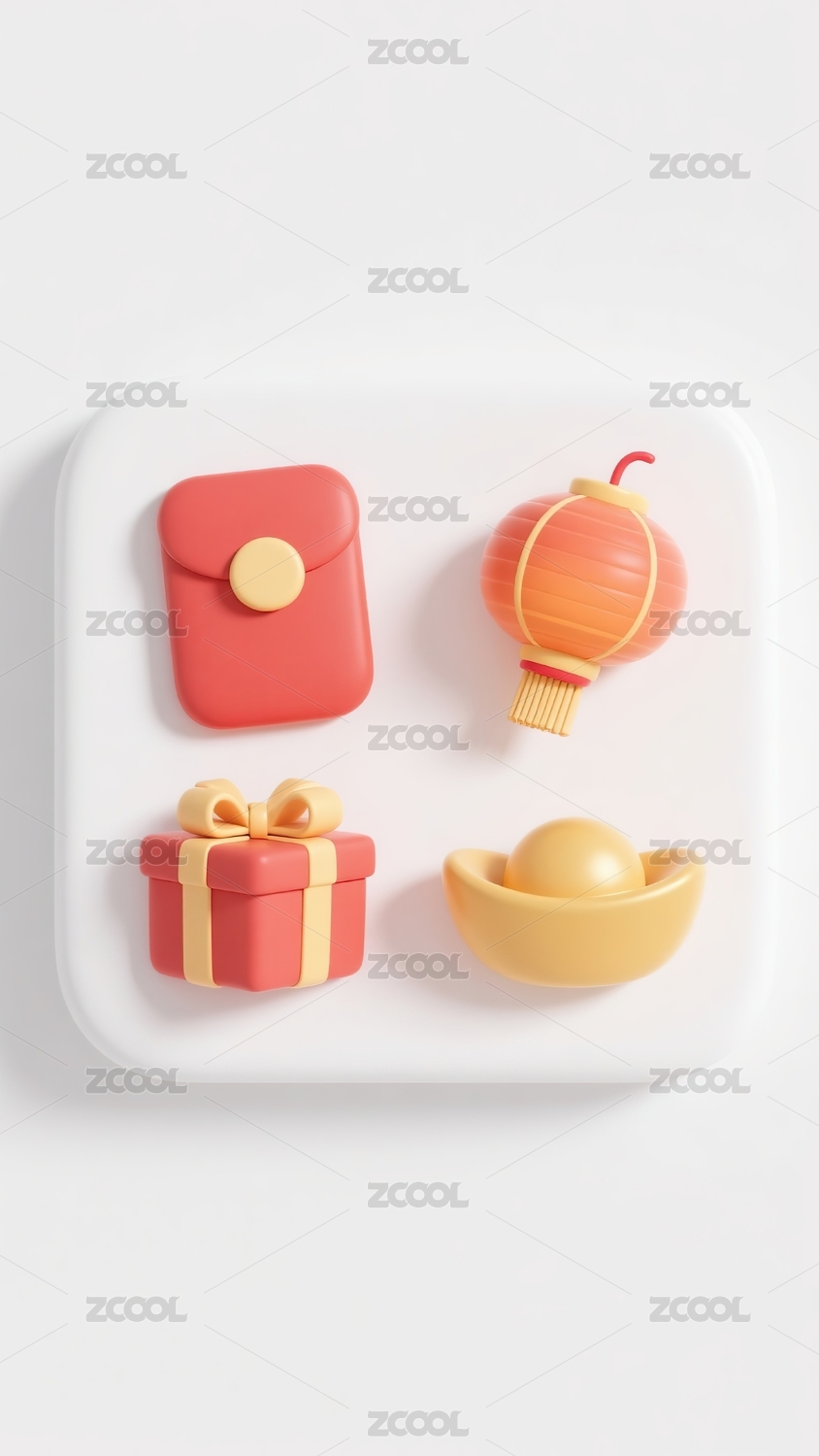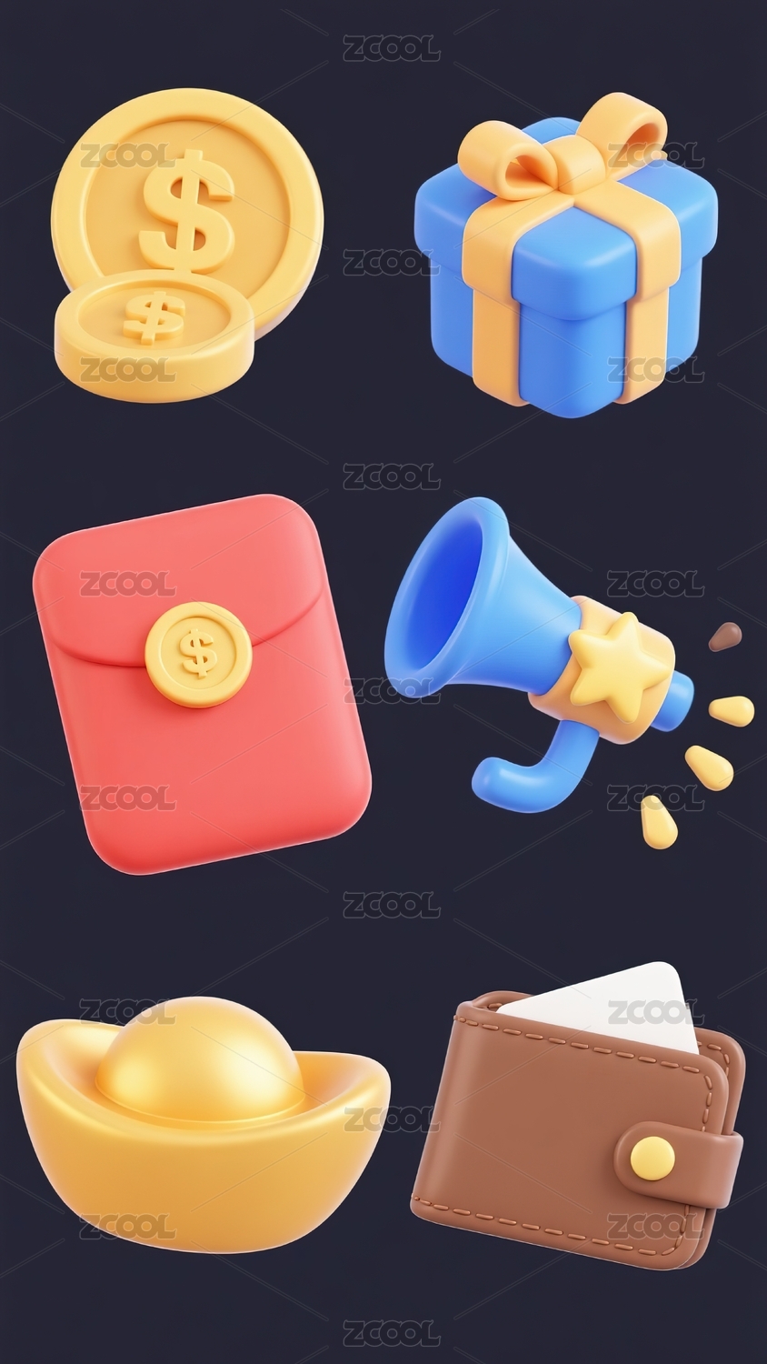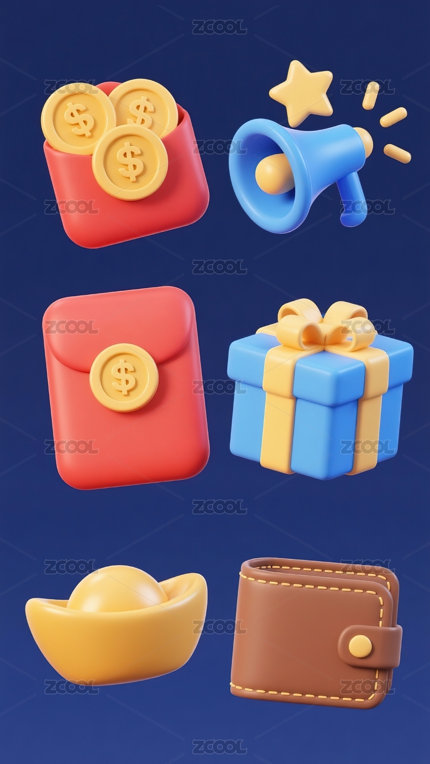 3D,卡通,红包,礼盒,图标,钱包,元宝,金币,喇叭