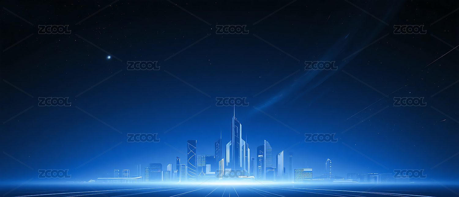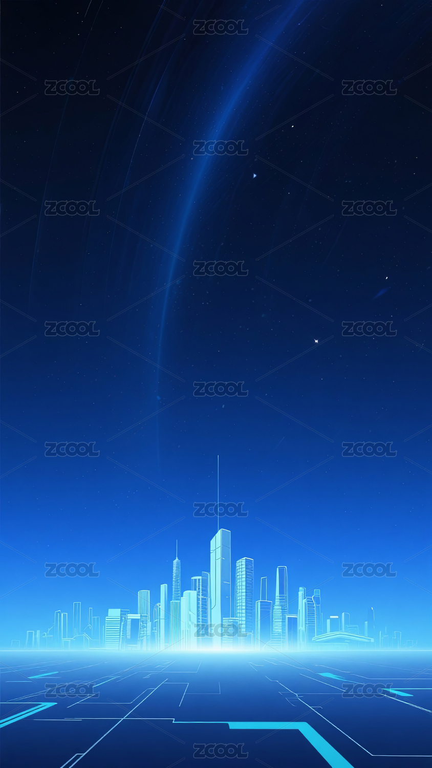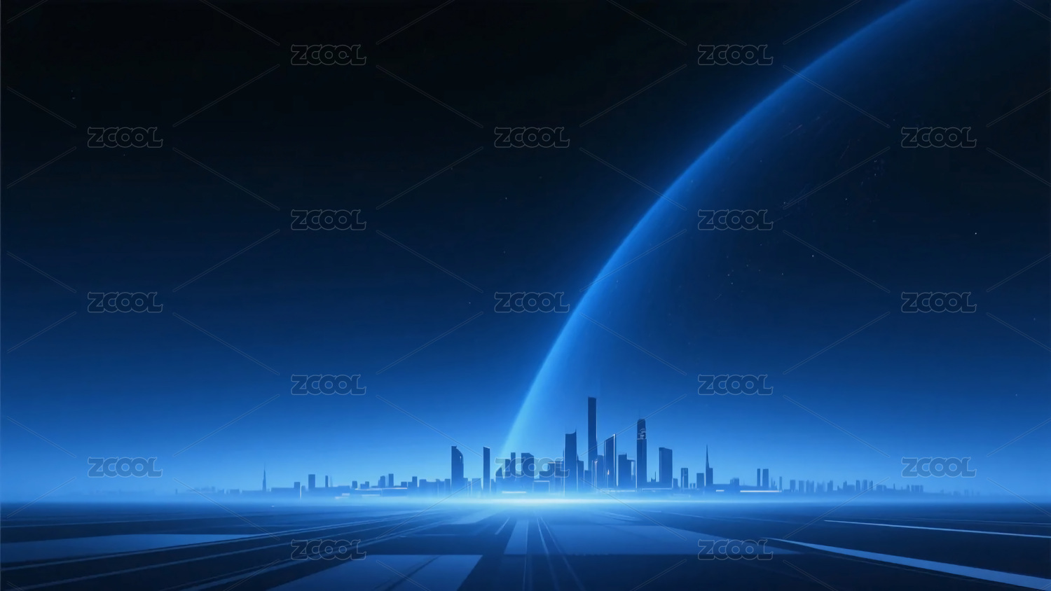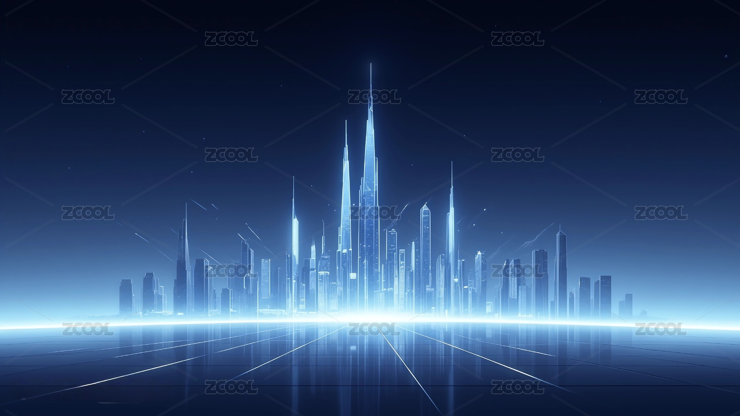 蓝色半透明玻璃几何未来科技城市建筑背景