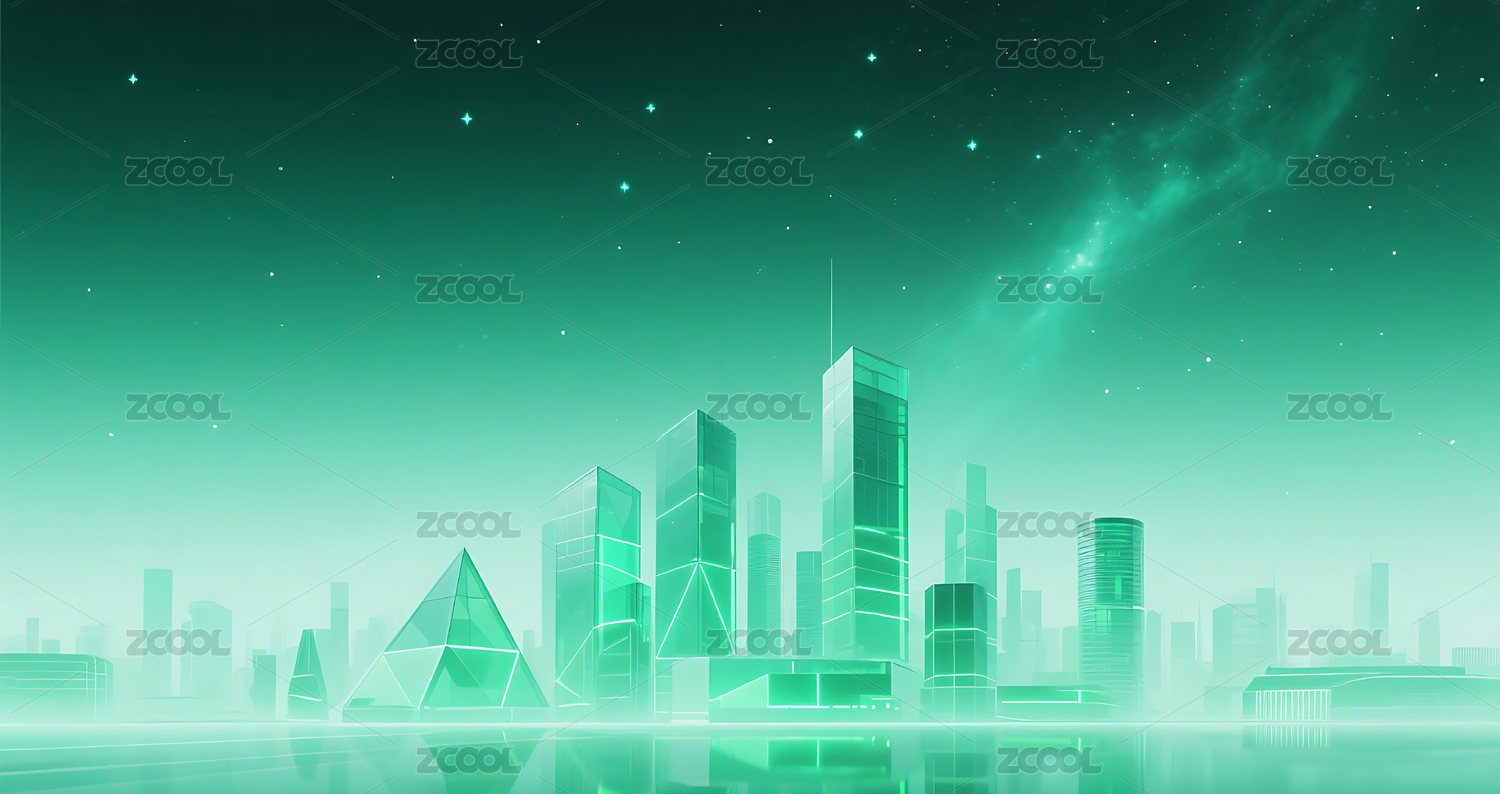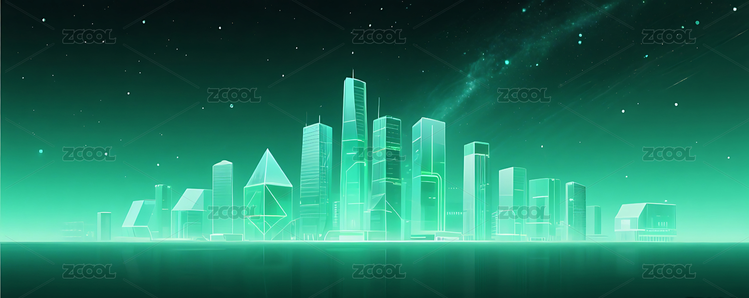 绿色半透明玻璃几何城市建筑背景