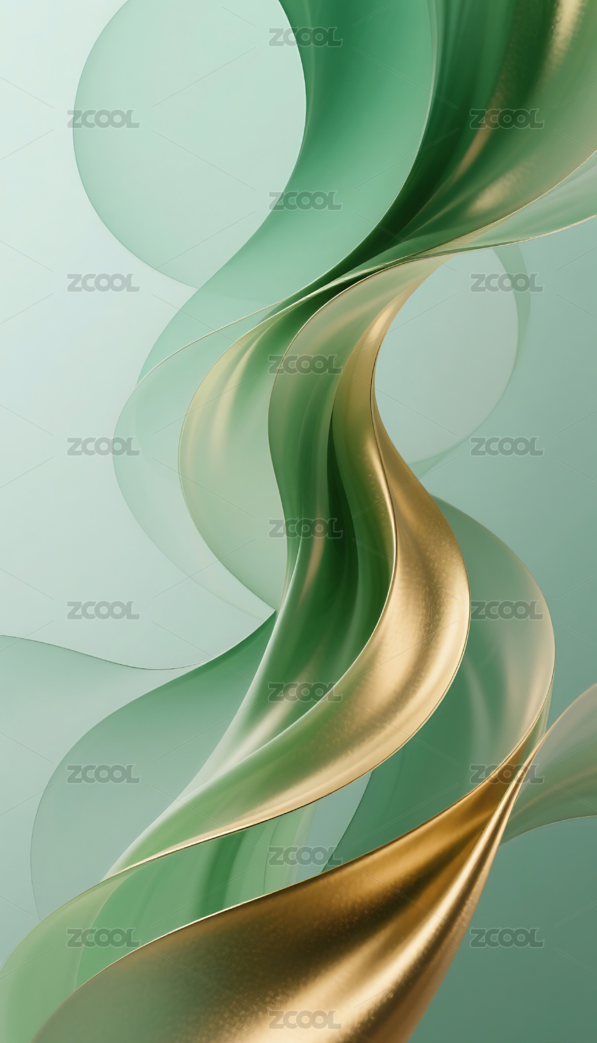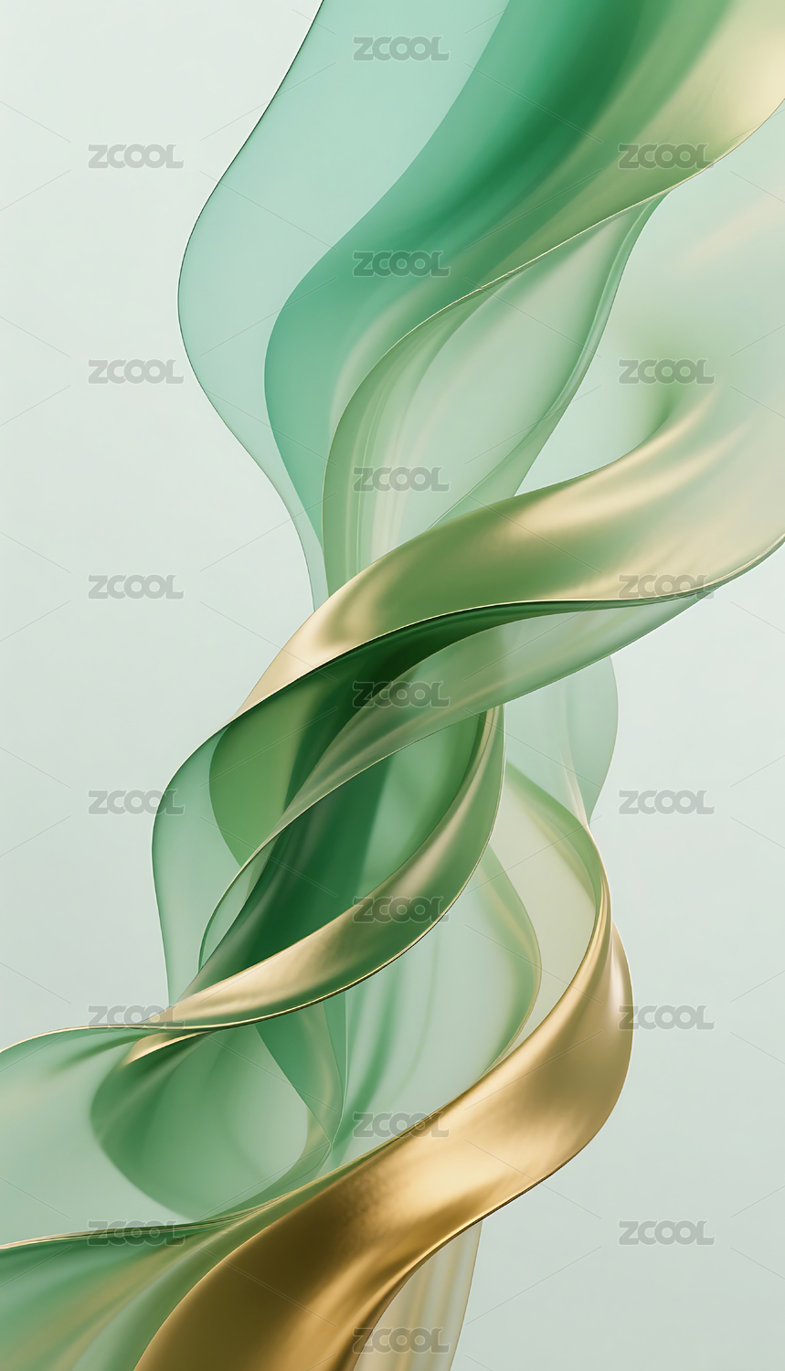 蓝绿色抽象流动柔和的丝绸曲线背景