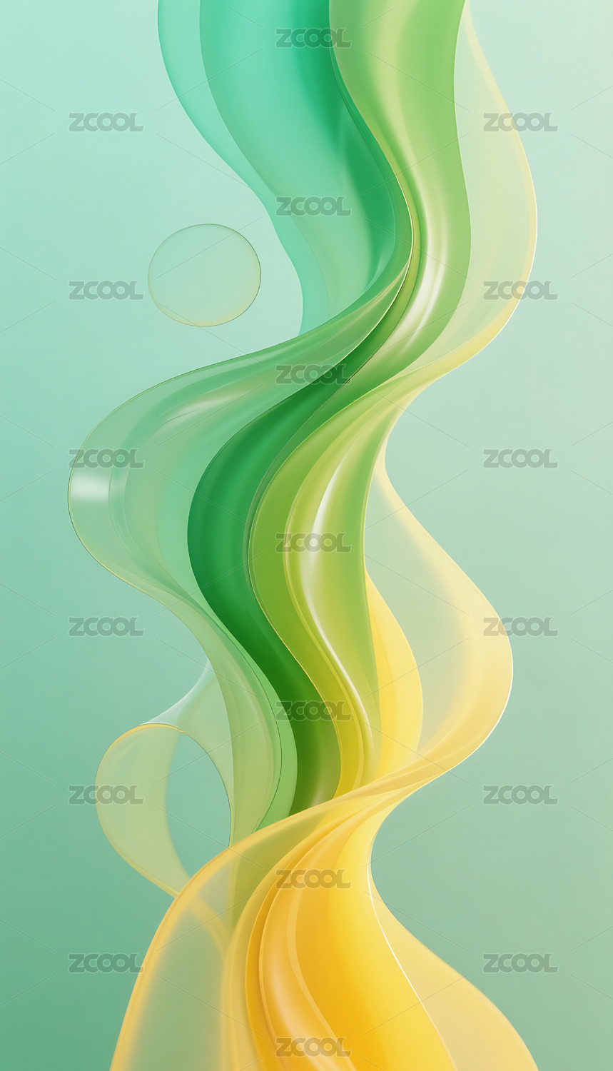 蓝绿色抽象流动柔和的丝绸曲线背景