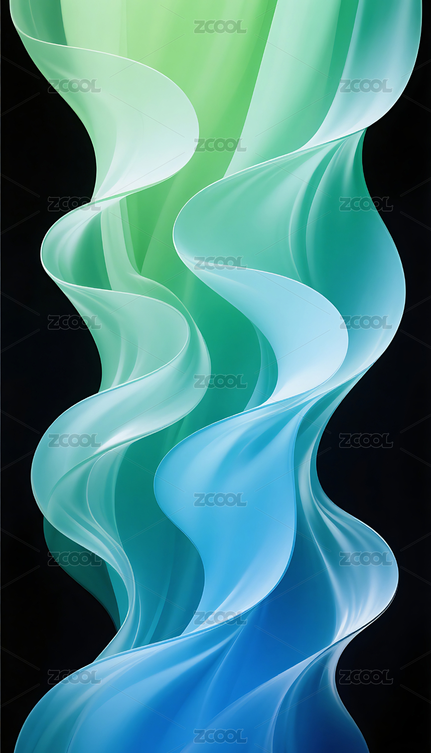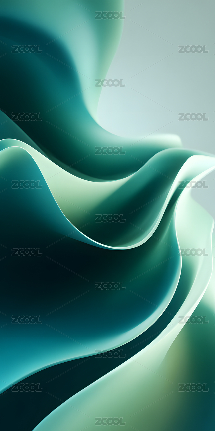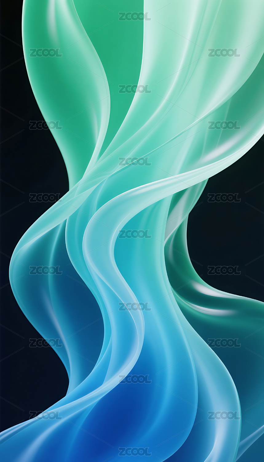 蓝绿色抽象流动柔和的丝绸曲线背景