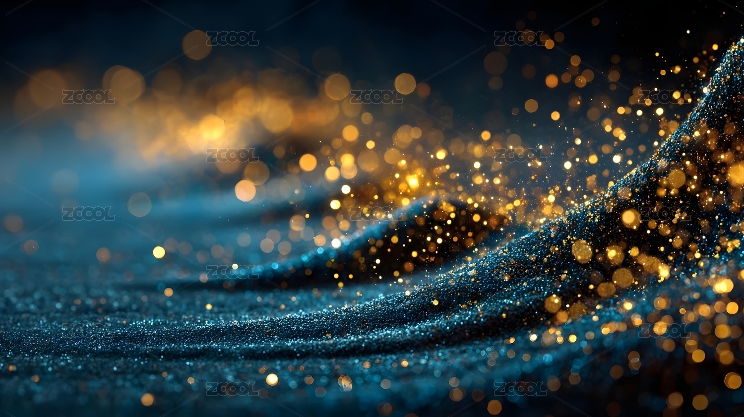 金蓝光点流淌,梦幻星光背景