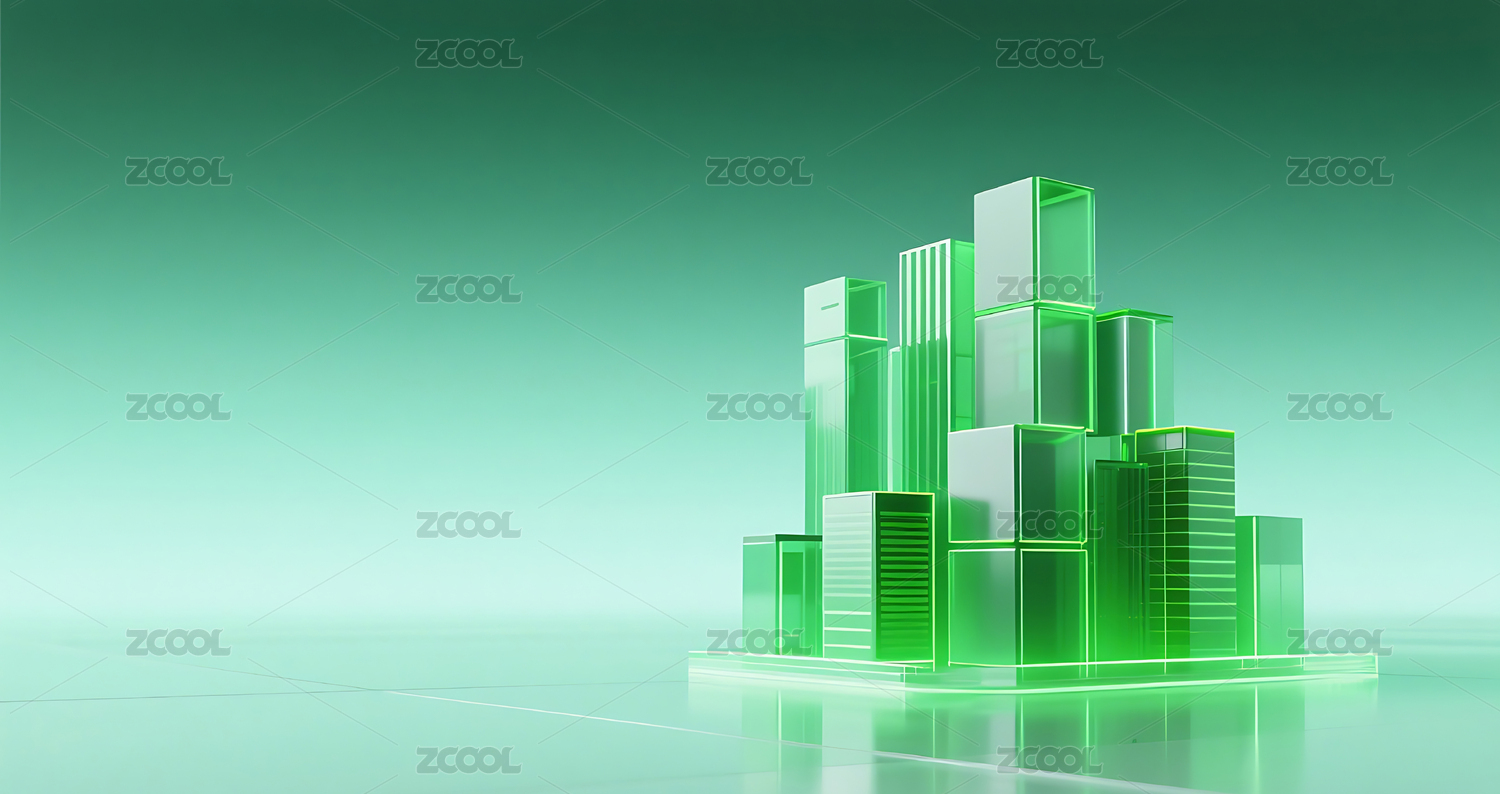 绿色科技几何方块玻璃质感城市建筑