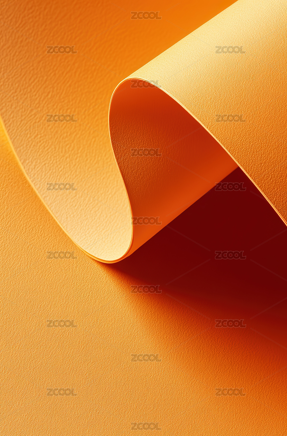 纸张卷曲形成曲线呈现暖色光影效果
