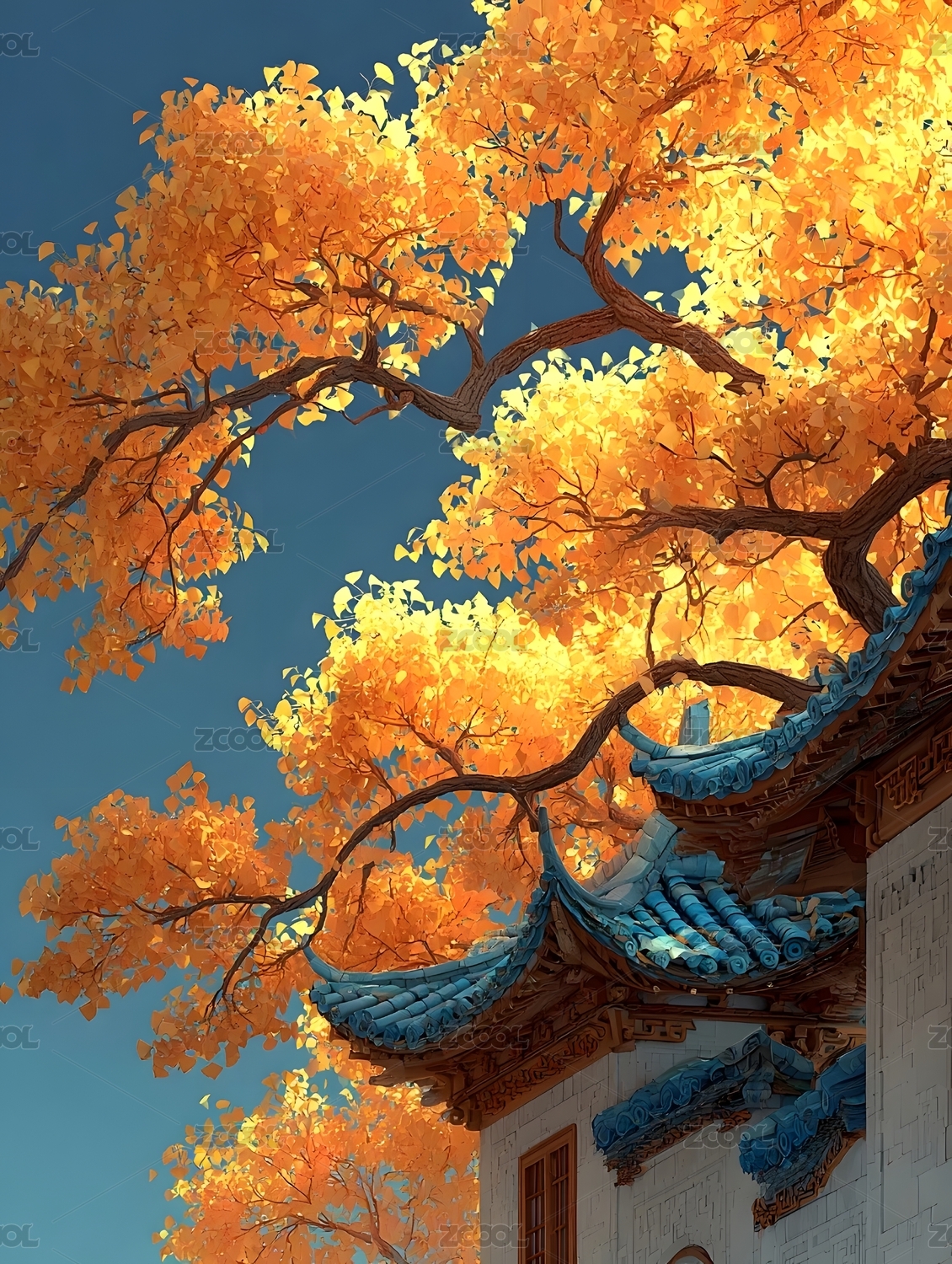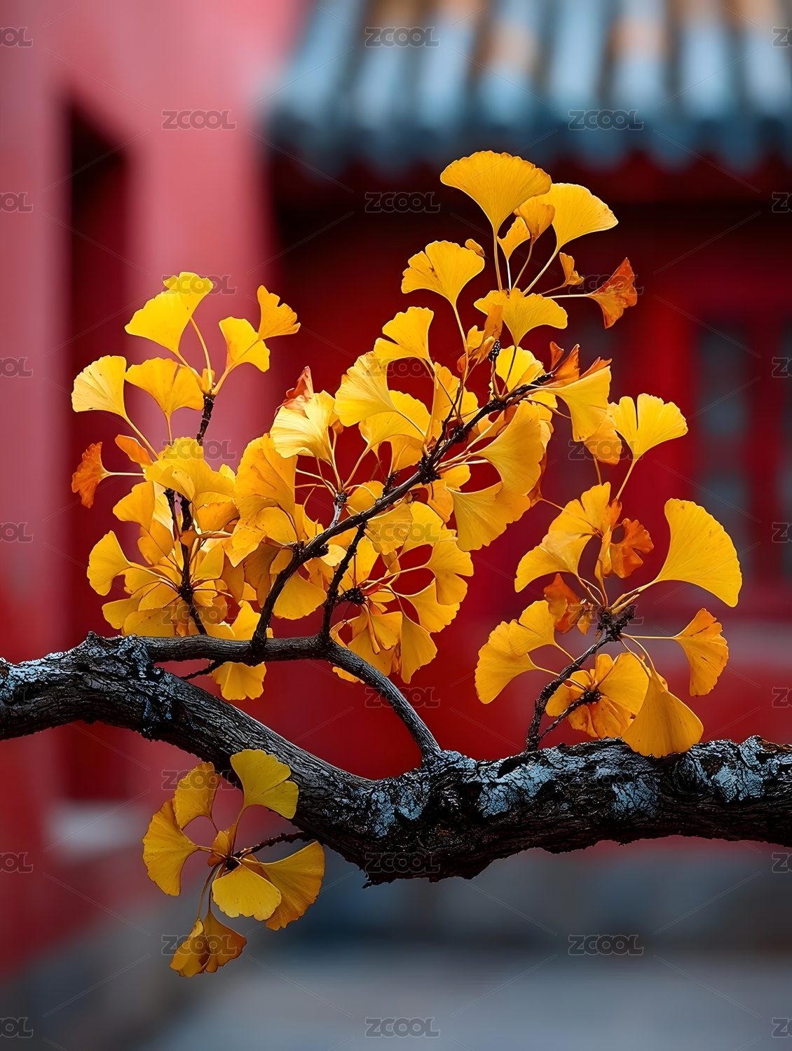 秋日古建筑银杏