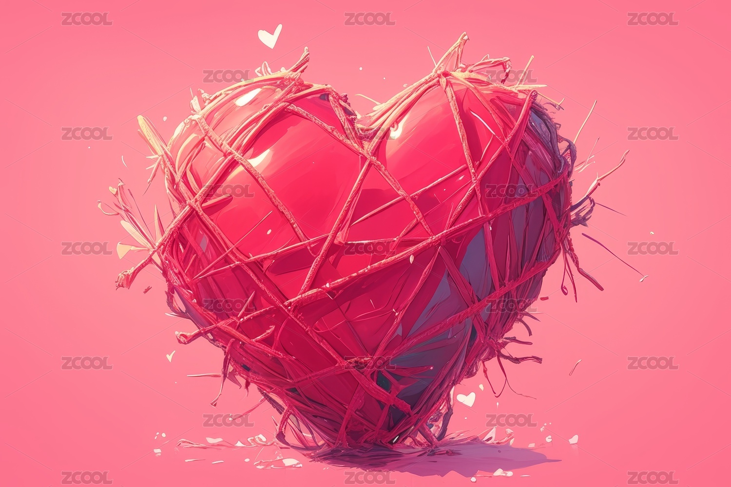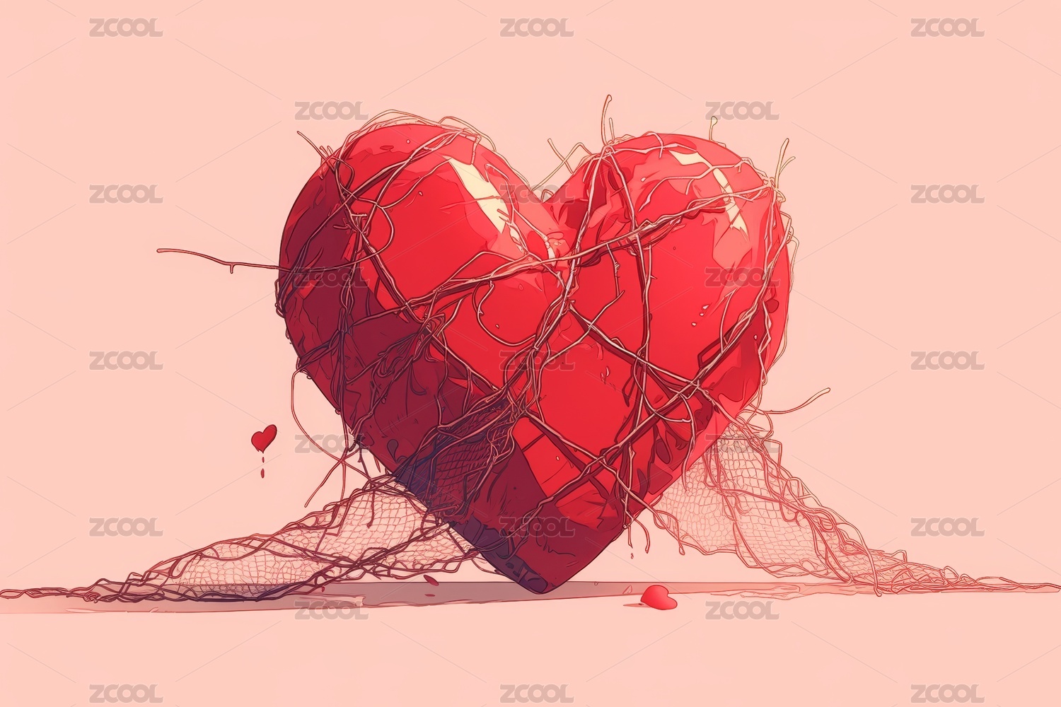 红色,缠绕,心形,艺术,图形,抽象,创意,设计,情感,表达