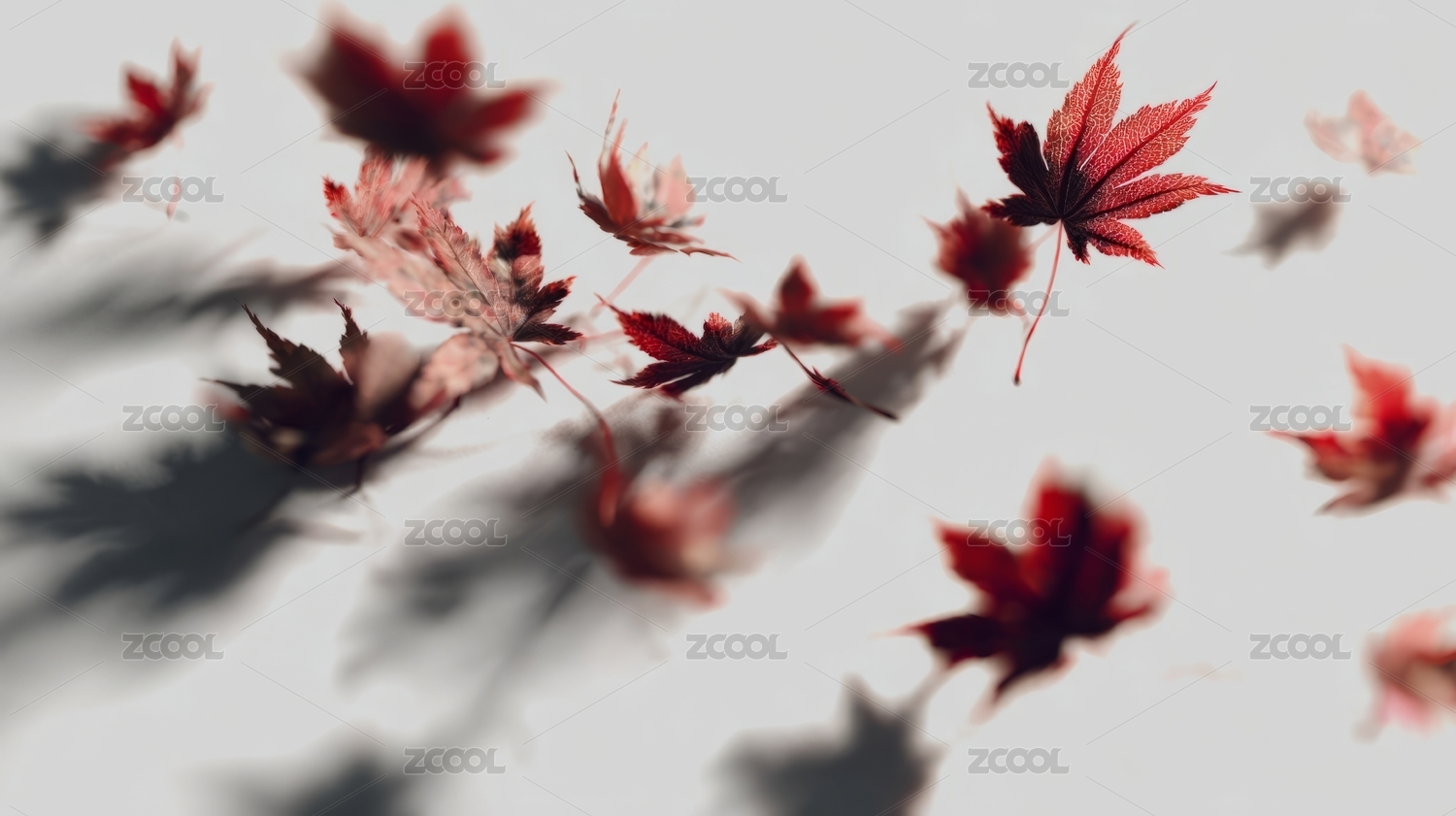 秋日红叶飘落美景