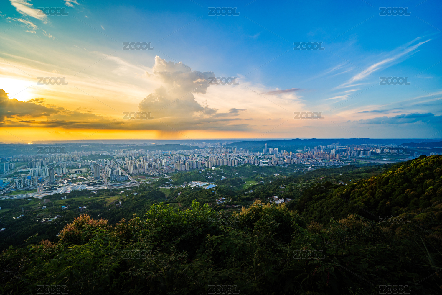 山西,长治,潞城区,老顶山,森林公园,城市,傍晚,落日,夕阳,云