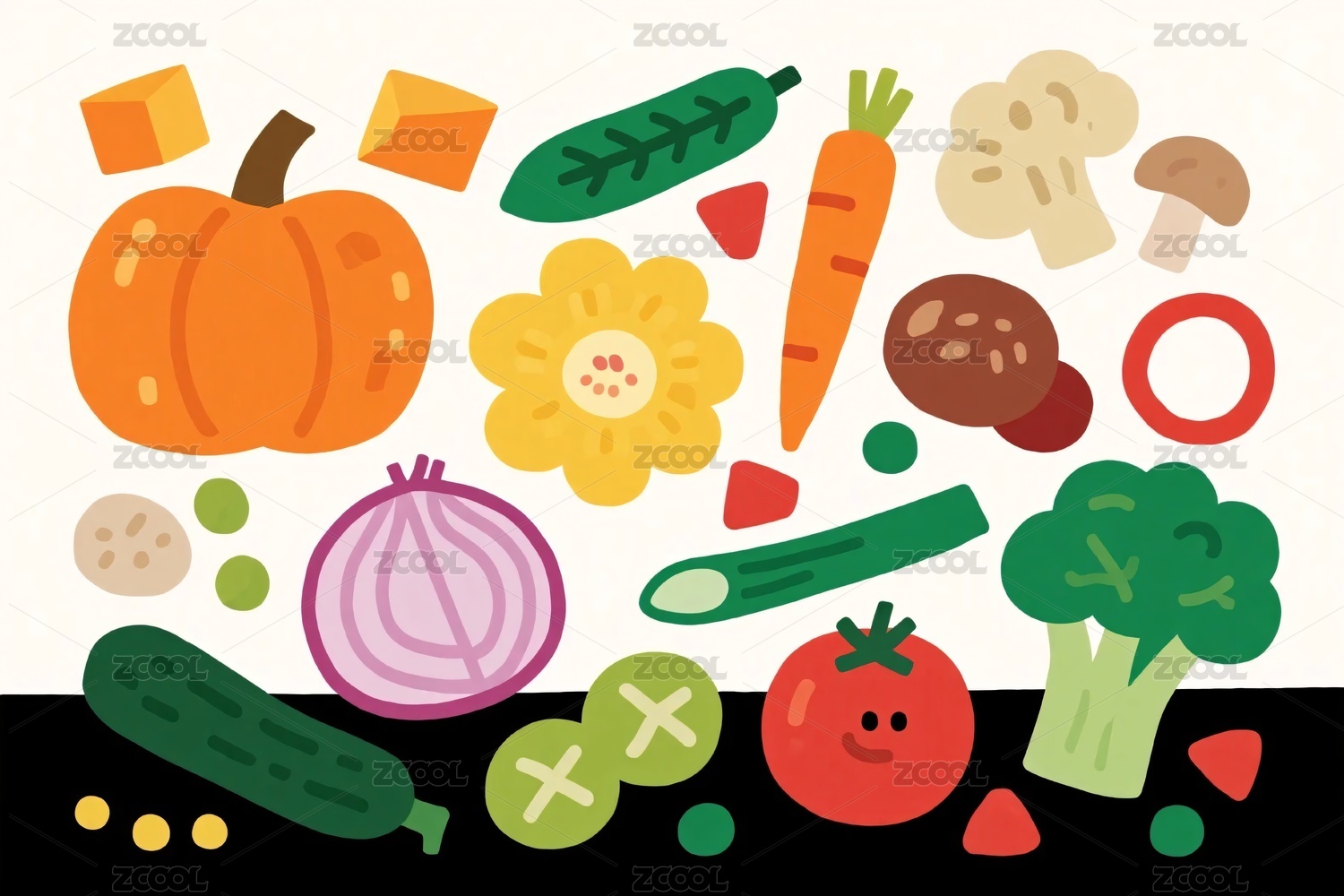 蔬菜,胡萝卜,黄瓜,生菜,柠檬,钓具,插画,模板,食物,植物