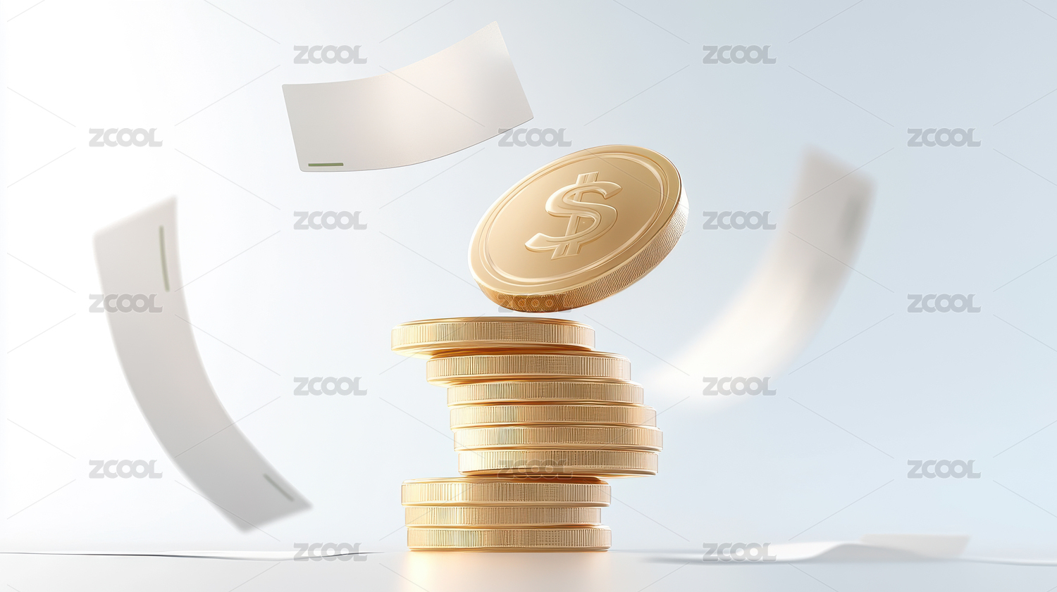 设计,背景,简洁,未来,增长,金币,堆叠,手放,财富,象征