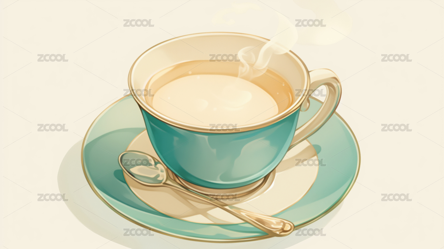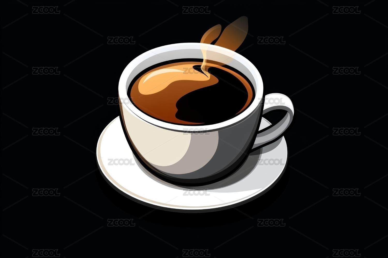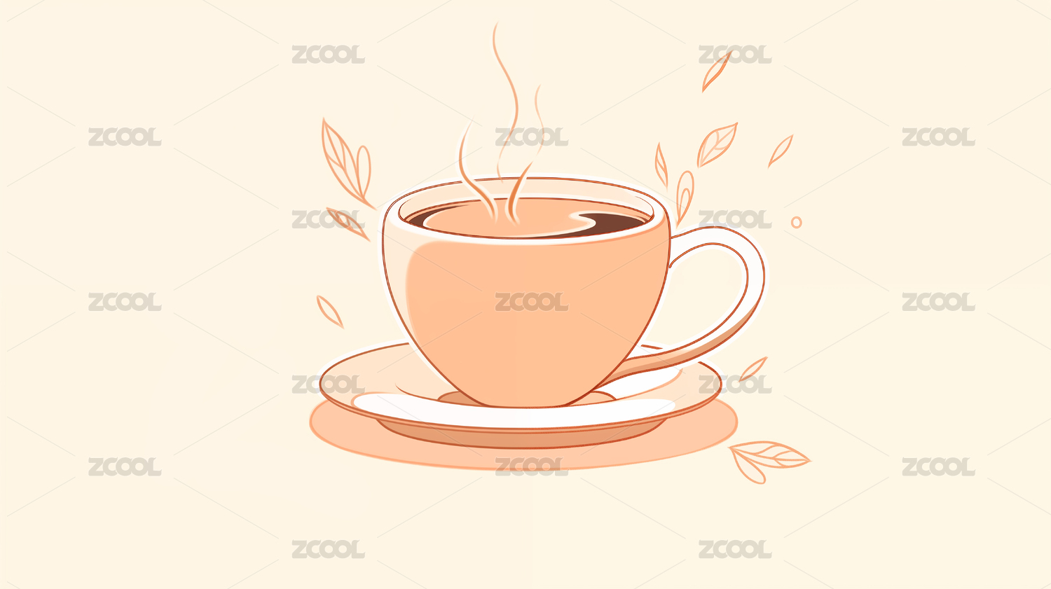 黑底桌面冒热气的一杯茶热饮3D立体插画