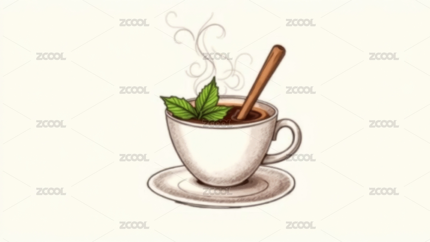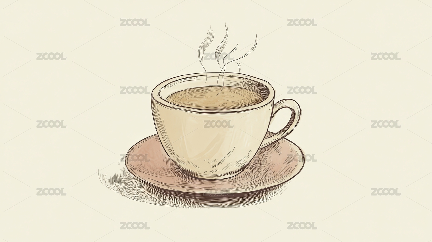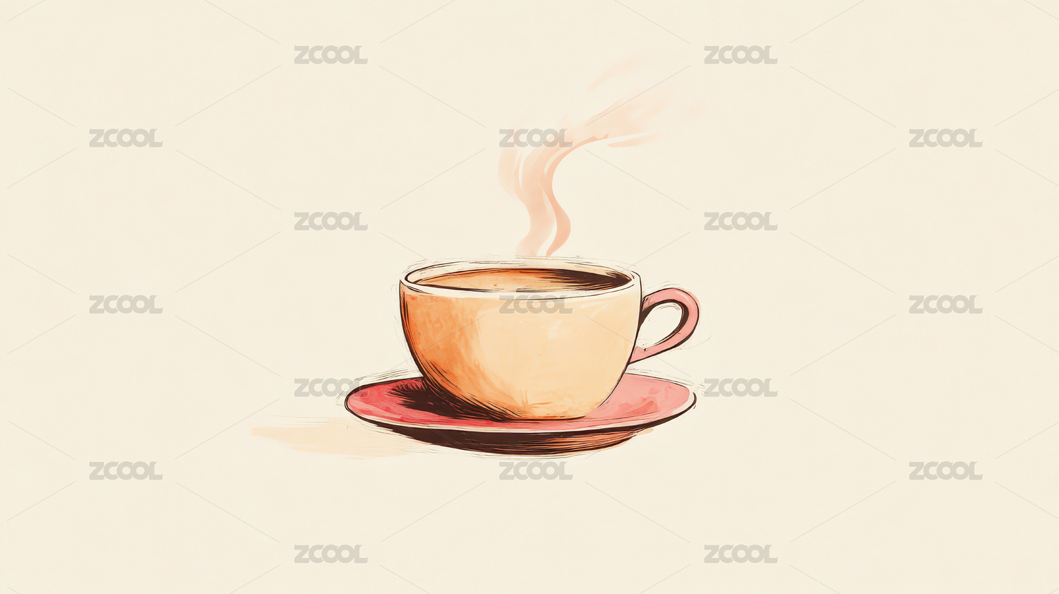 黑底桌面冒热气的一杯茶热饮3D立体插画
