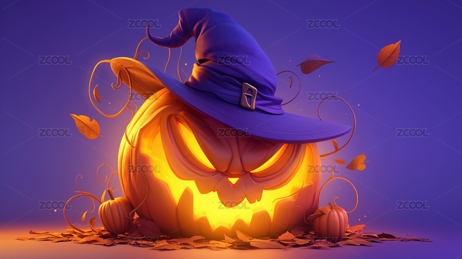 橙色南瓜灯,紫色背景