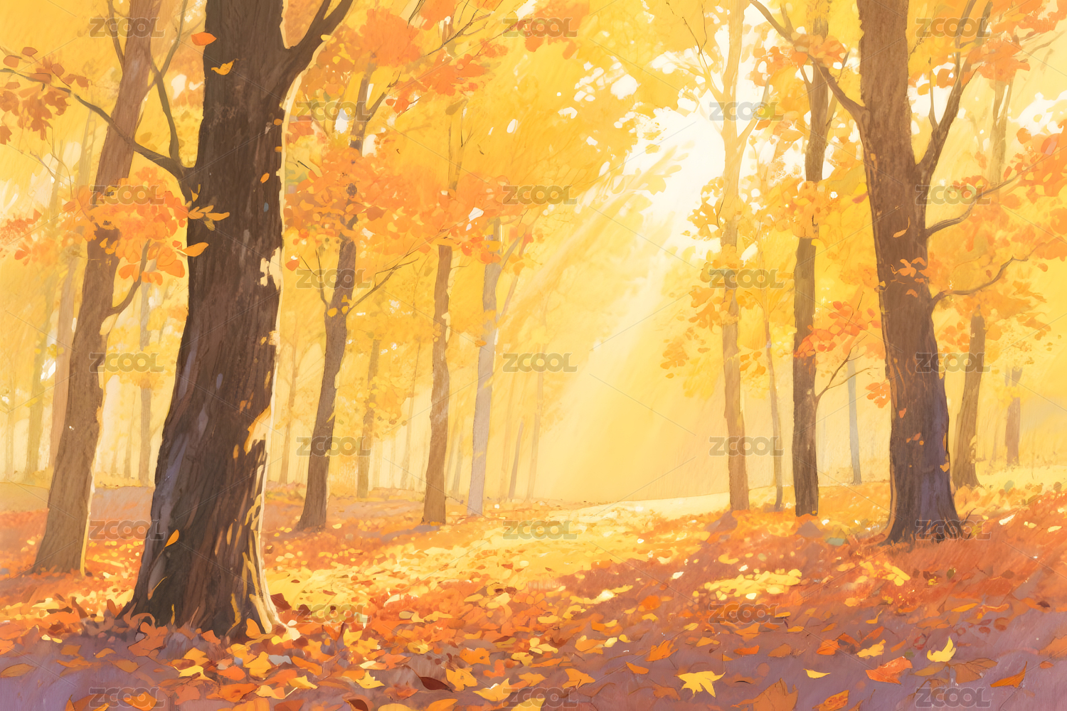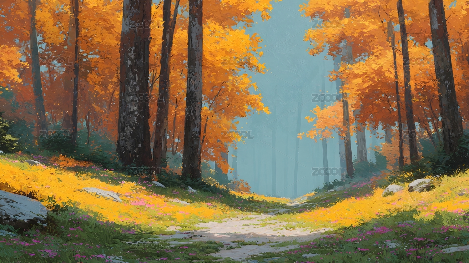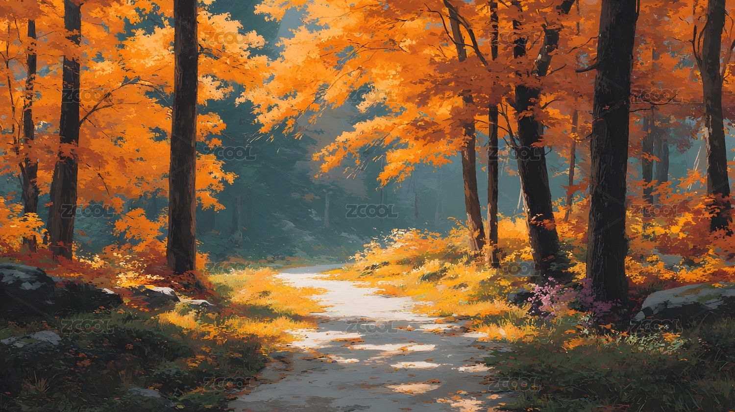 秋季森林小径插画