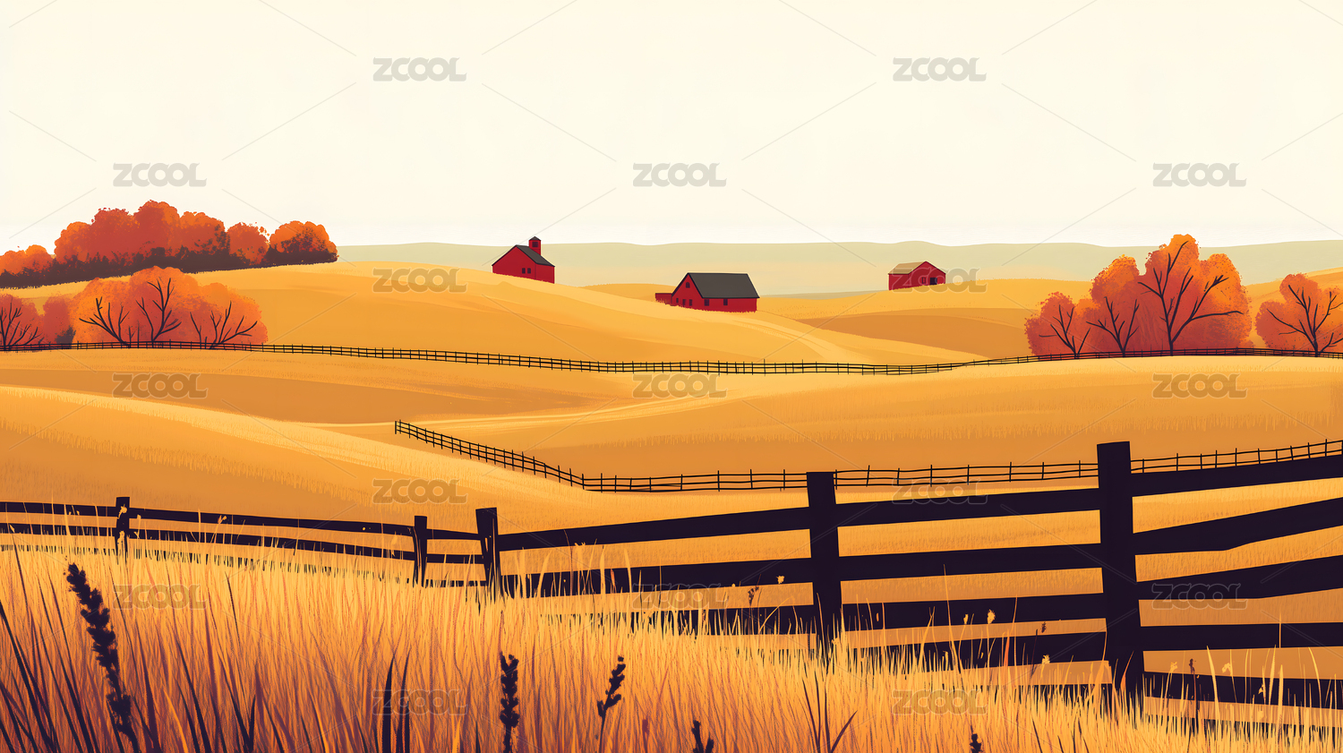 秋季风景插画水彩风格