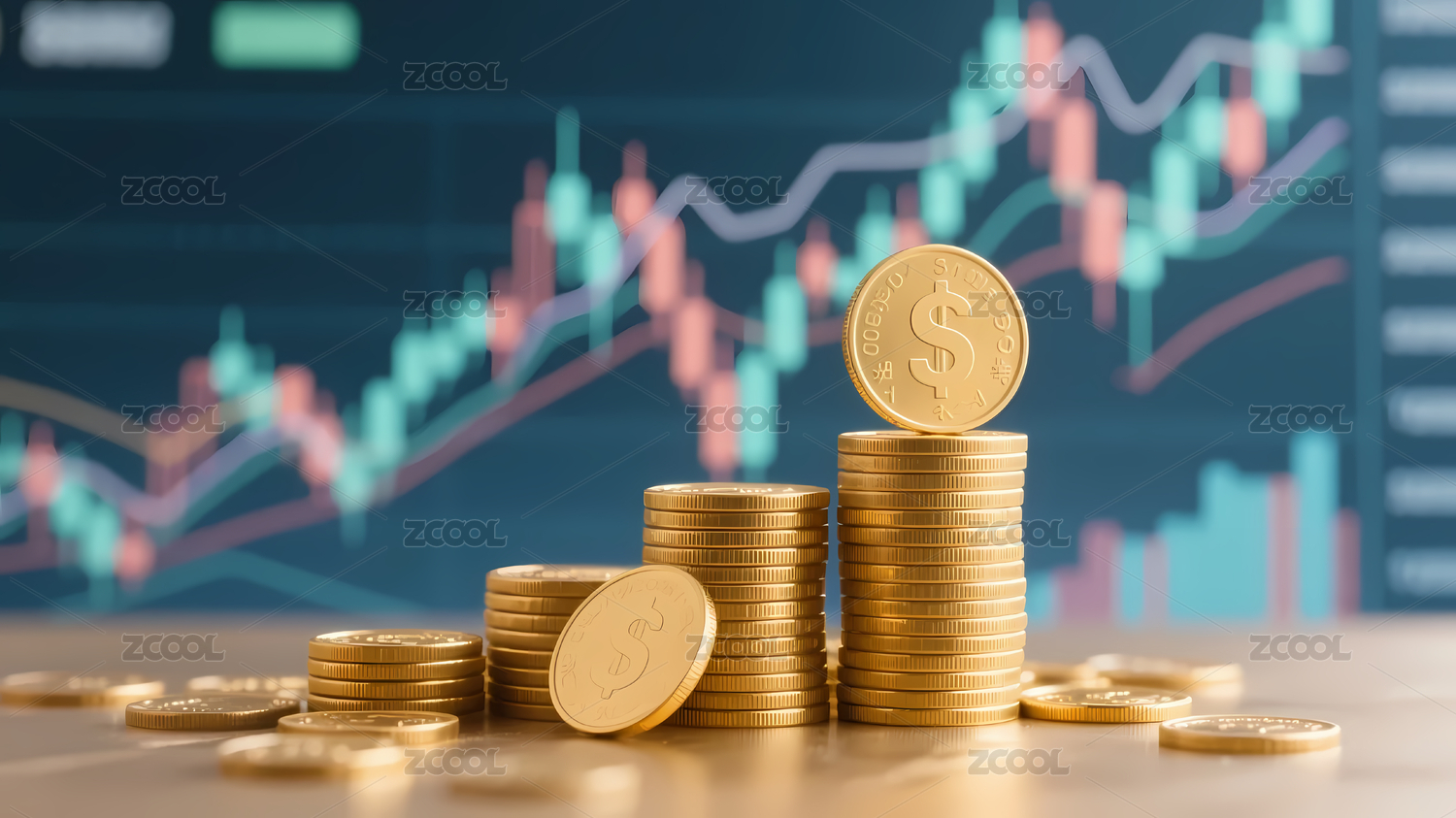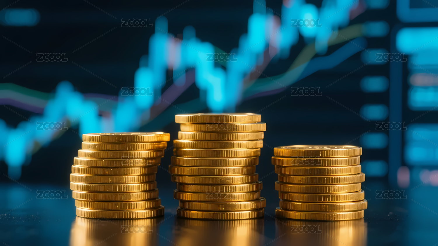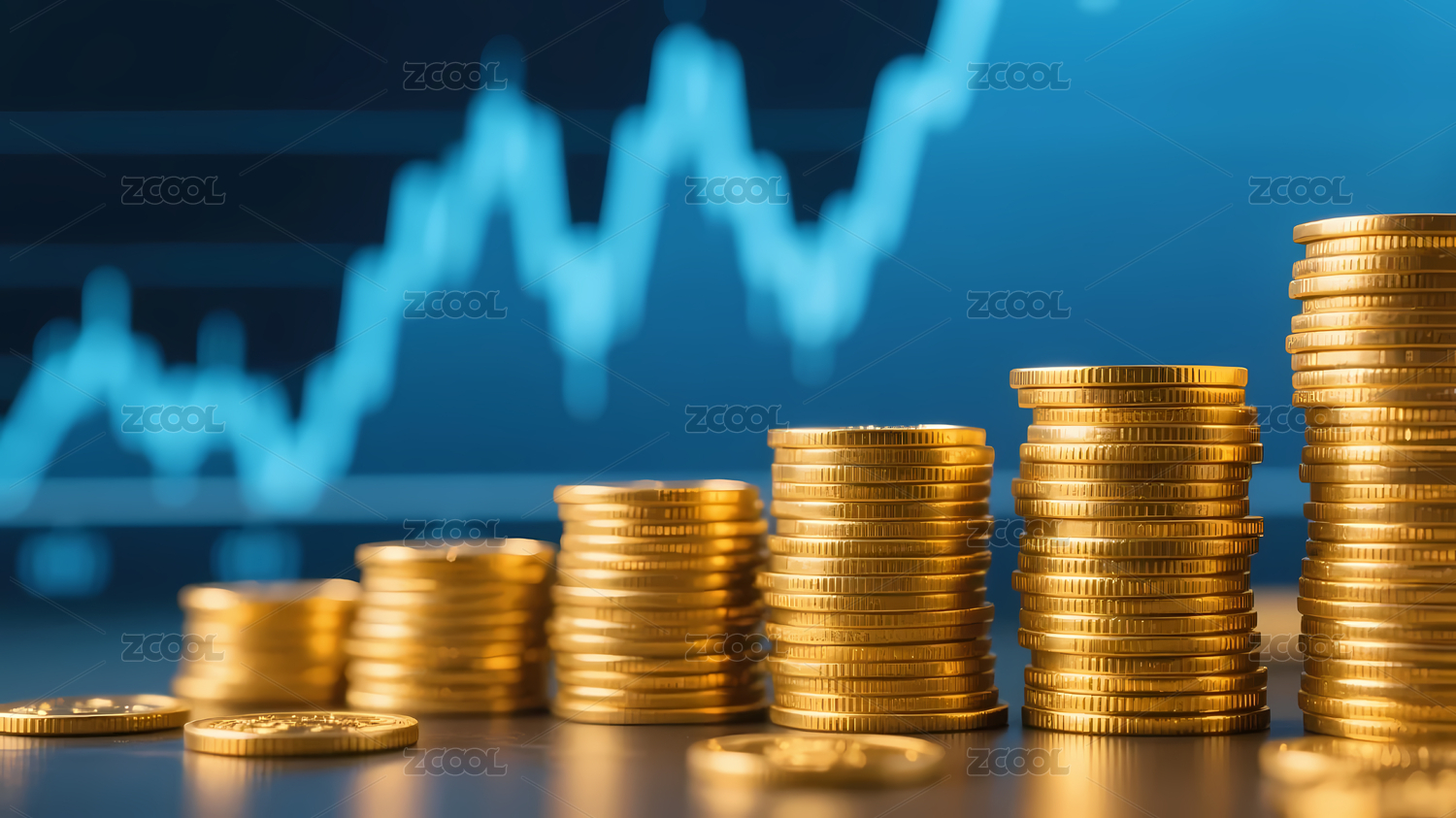 蓝色,背景,象征,硬币,财富,增长,投资,美元,经济,图表