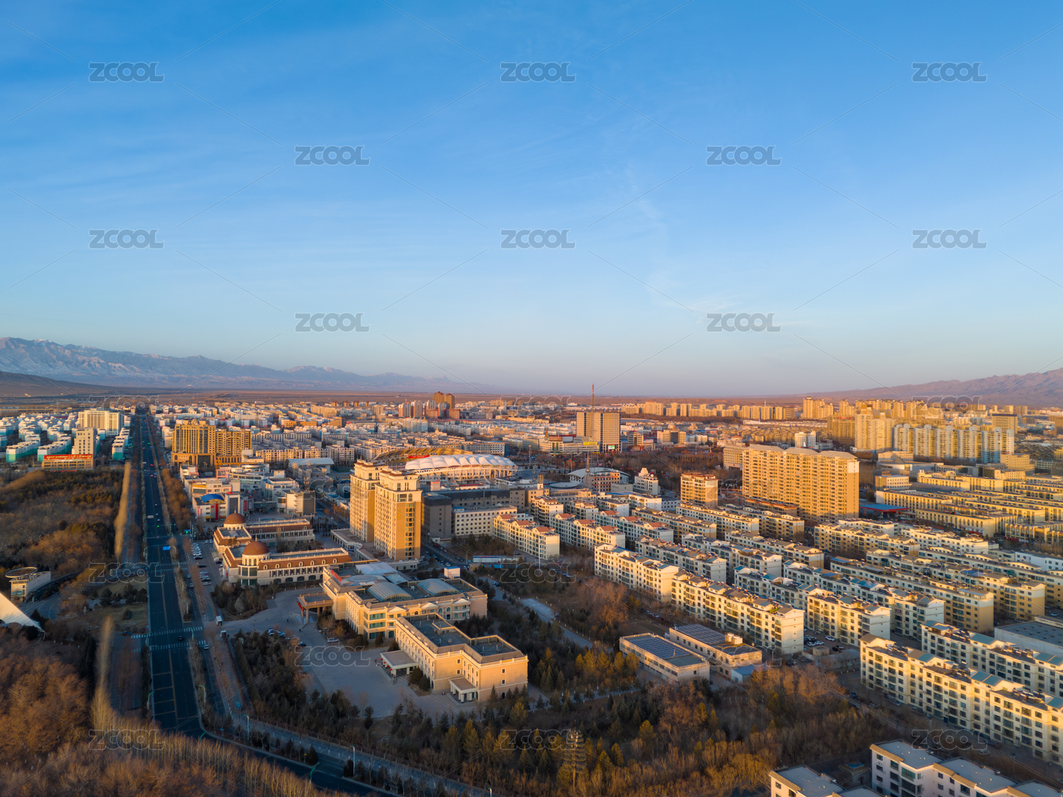 甘肃省,嘉峪关市,城市,建筑,道路,天空,树木,住宅区,自然,环境