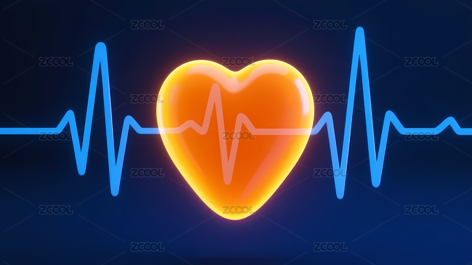 蓝色,线条,背景,象征,橙色,心形,心电图,健康,生命,活力