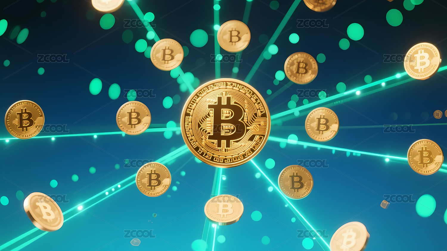 深蓝,科技感,光点,背景,网络,连接,比特币,数字,光束,绿色