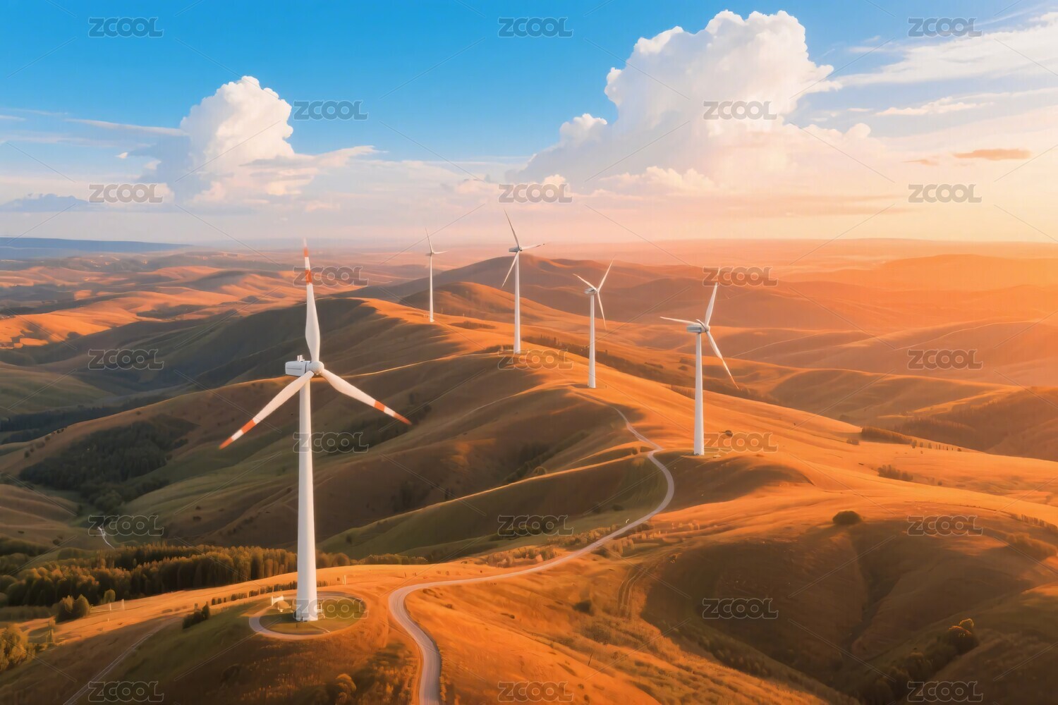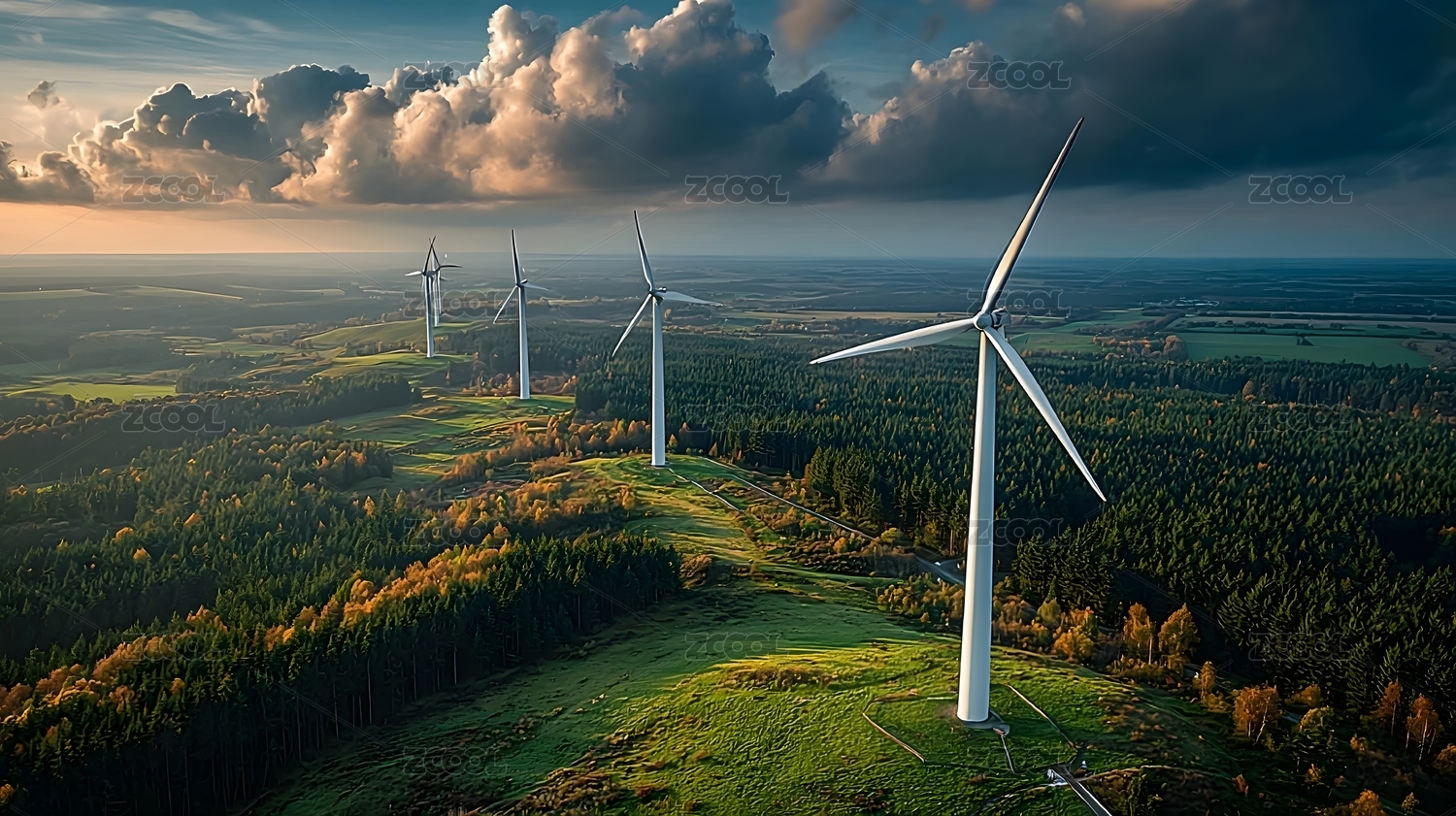 天空,地平线,绿色,自然,风景,科技,云,远山,风车,能源