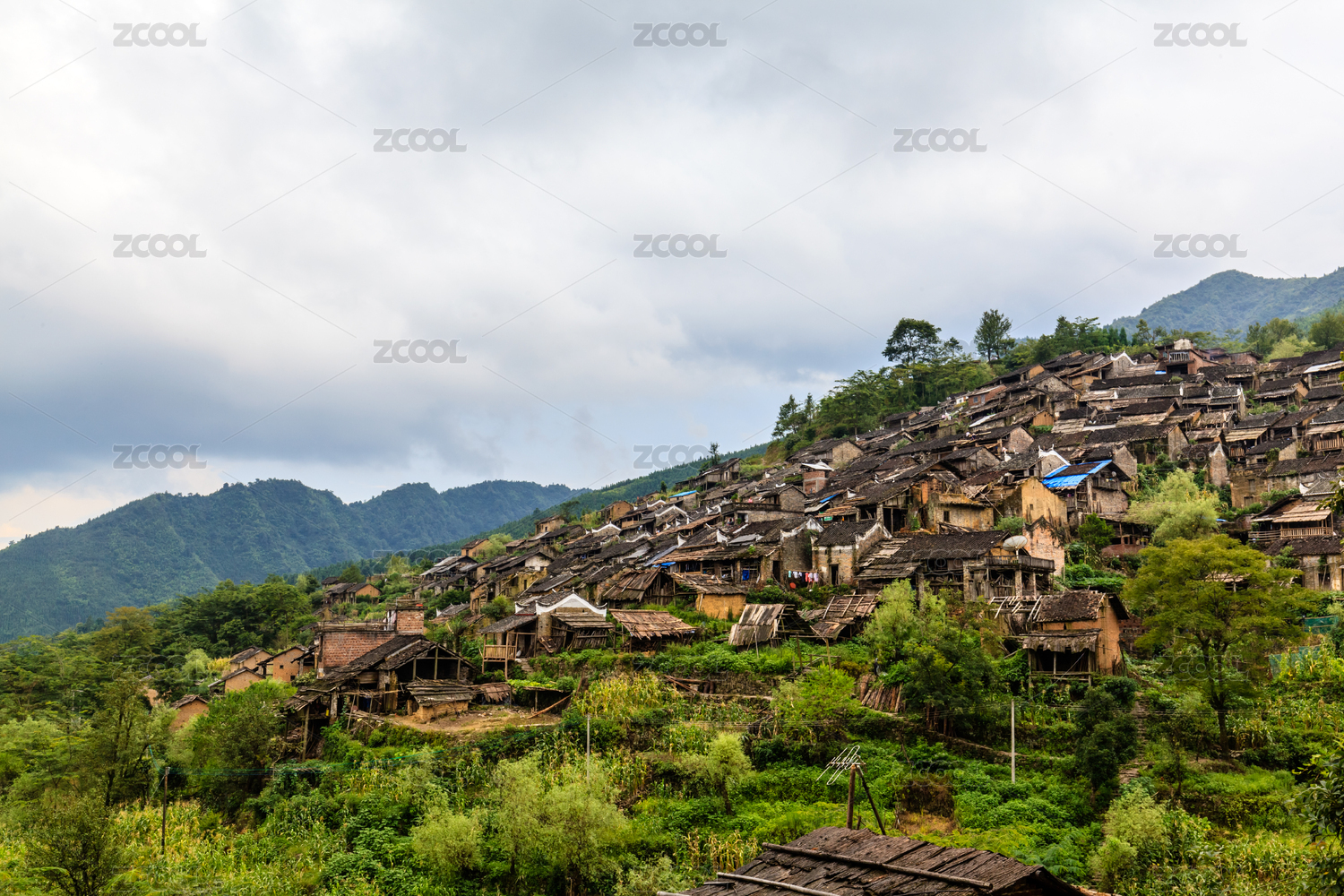 中国贵州黔东南,岜沙苗寨,山区与寨子风光
