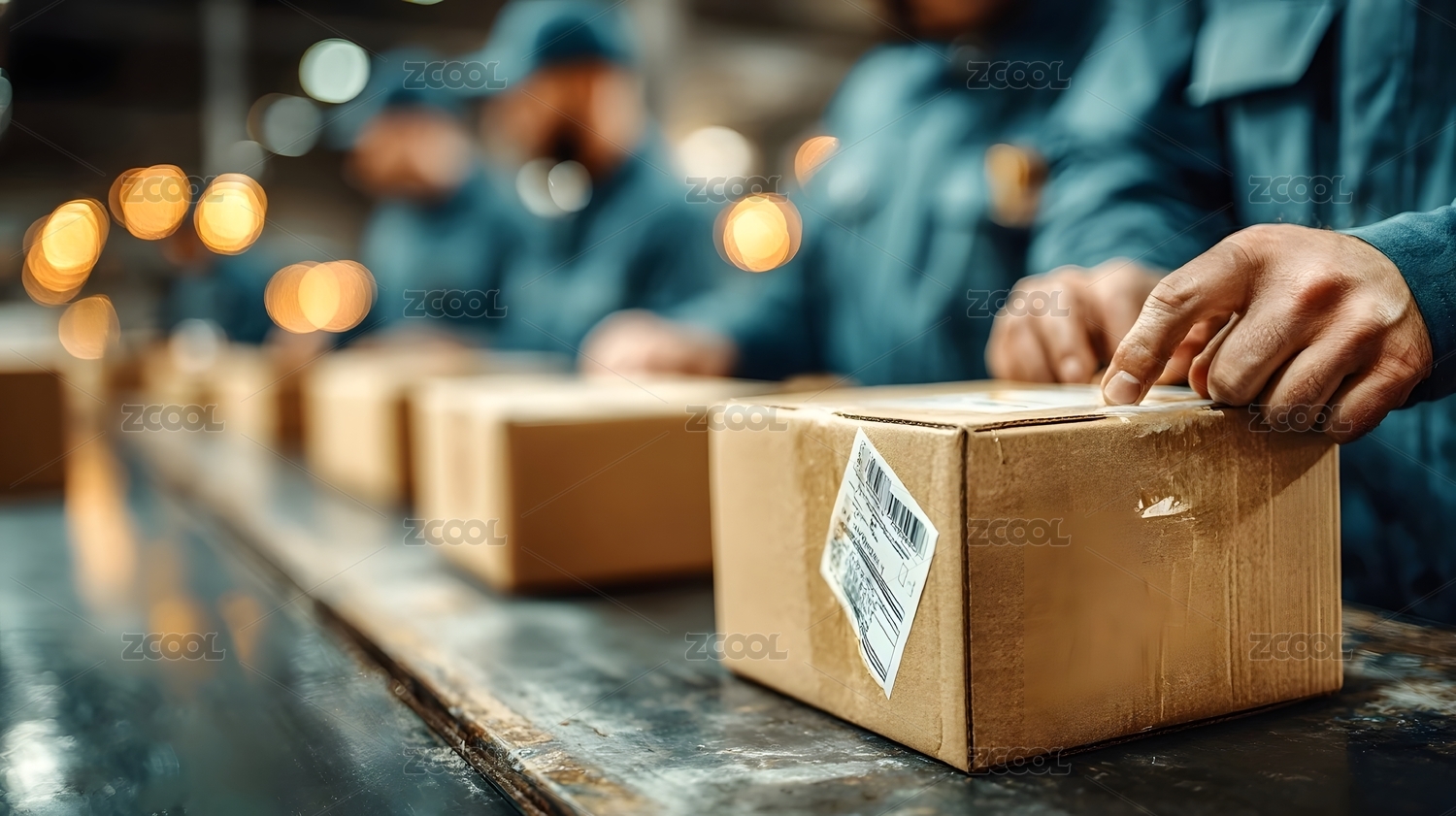 包裹纸箱包装在仓库传送带上,电子商务产品