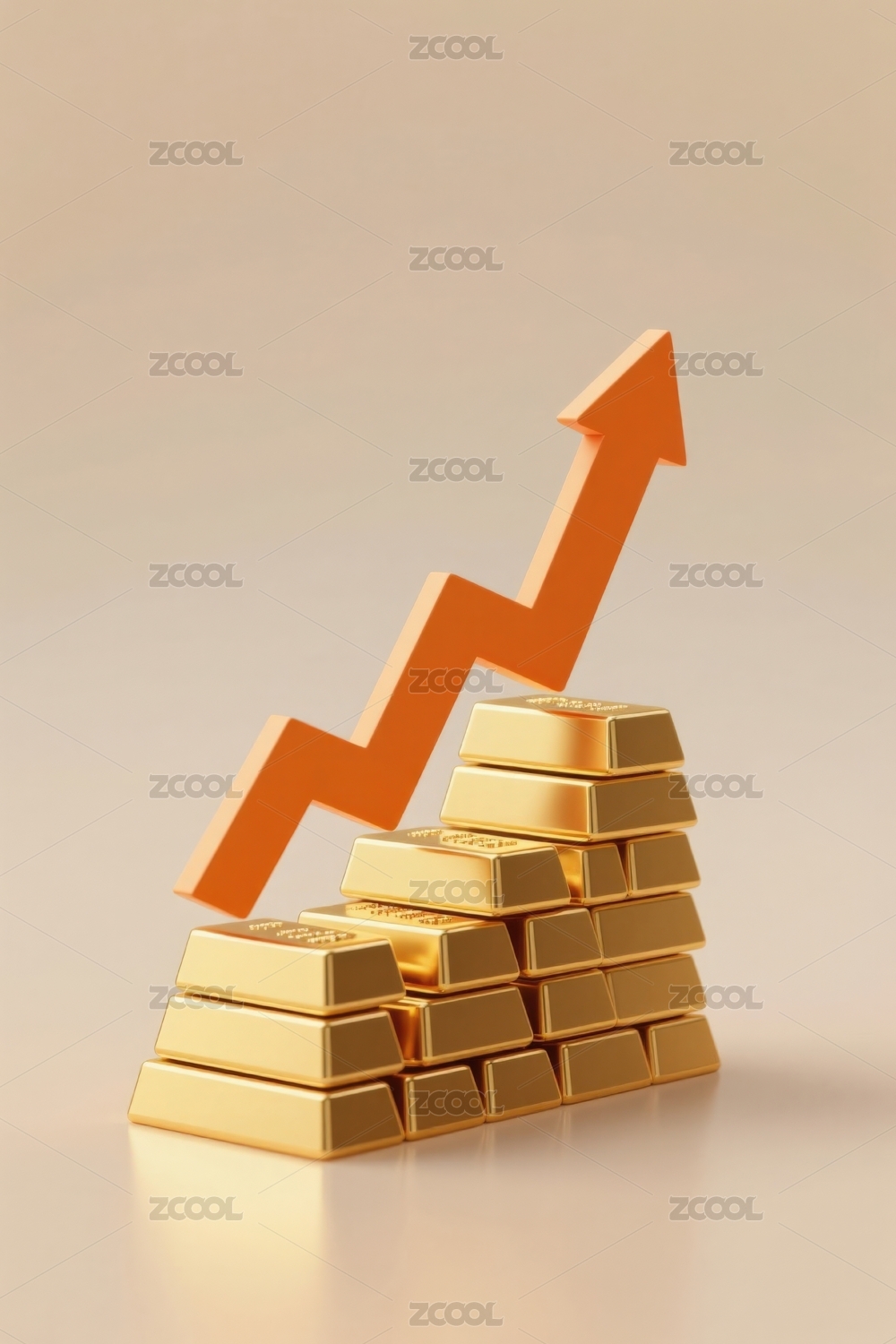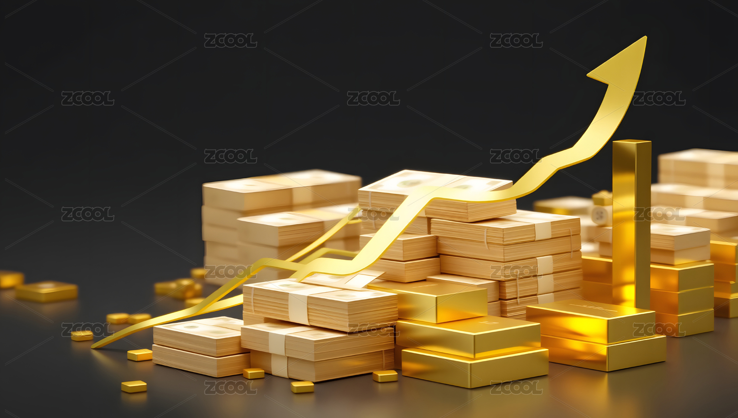 金色柱状图与上升箭头:金融增长的视觉呈现