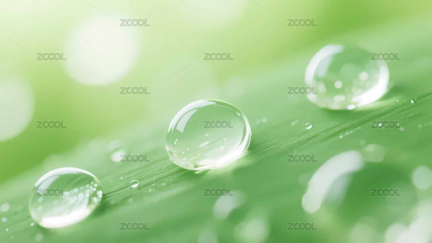 光滑水面和绿色背景中的泡泡,化妆品成分分
