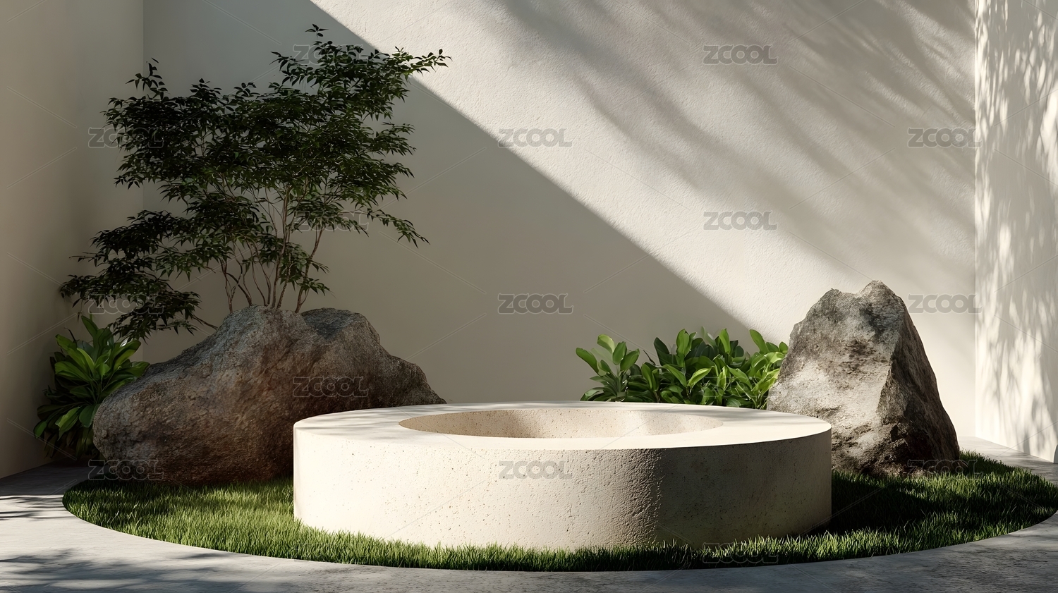 简约庭院石台光影