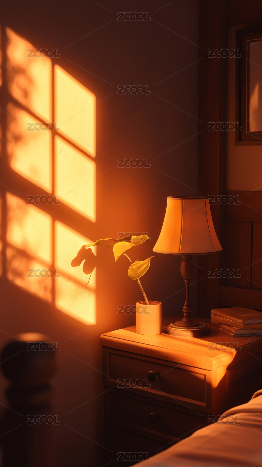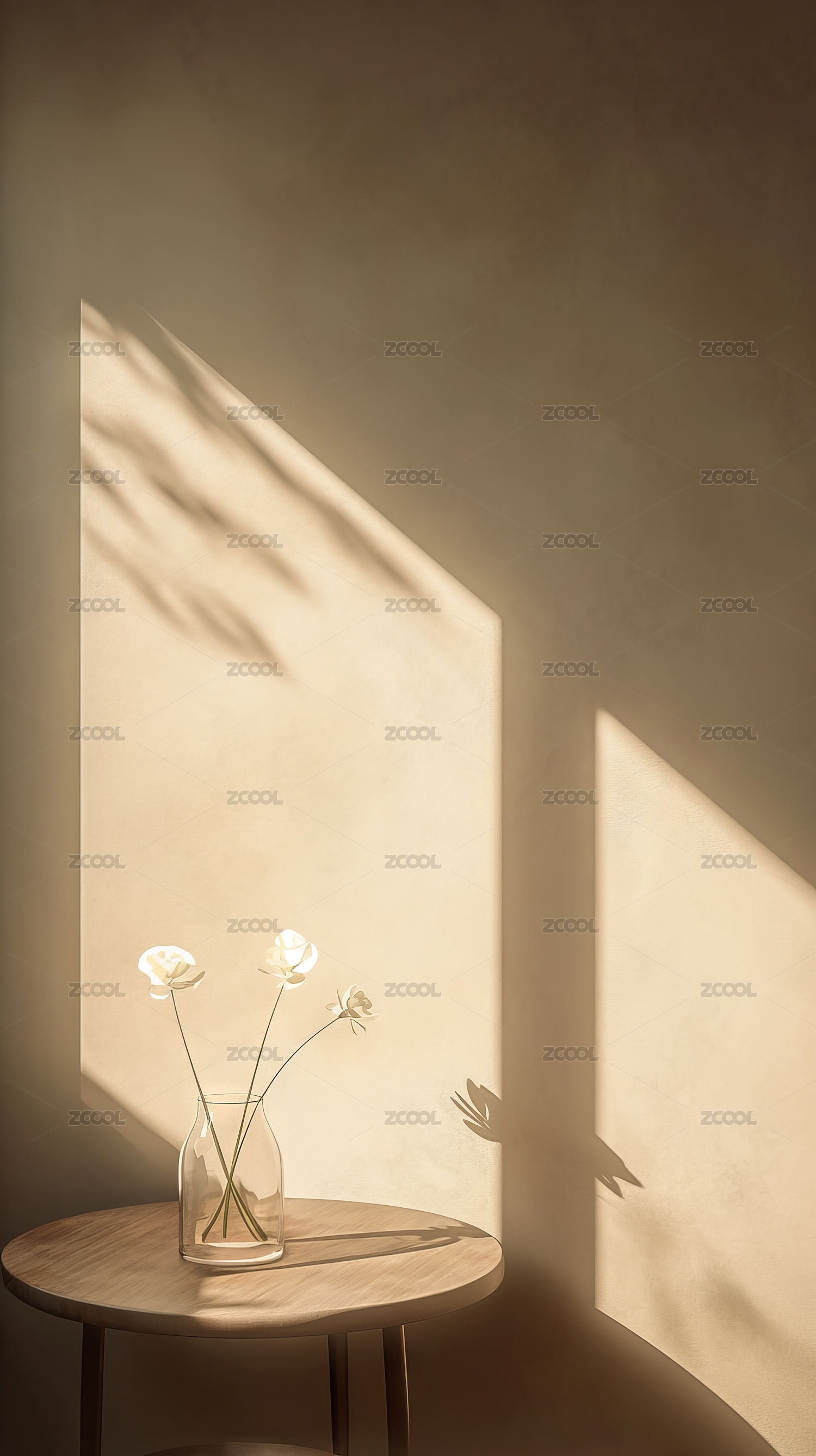 现代,光影,宁静,简约,柔和,阳光,植物,温暖,静物,室内