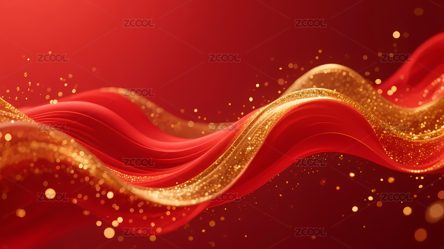 金色光点波浪红色背景
