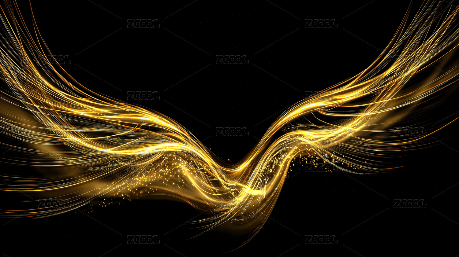 金色流线在黑暗背景中舞动
