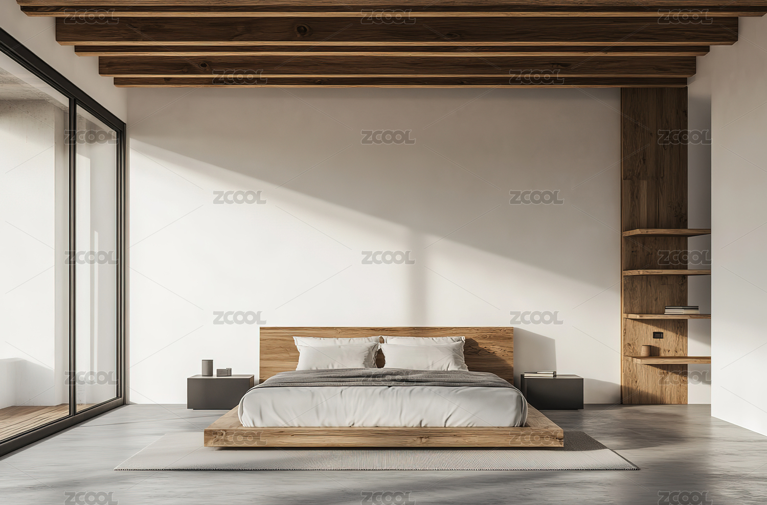 装饰,室内,植物,阳光,木质,木板,卧室,床,木门,玻璃窗