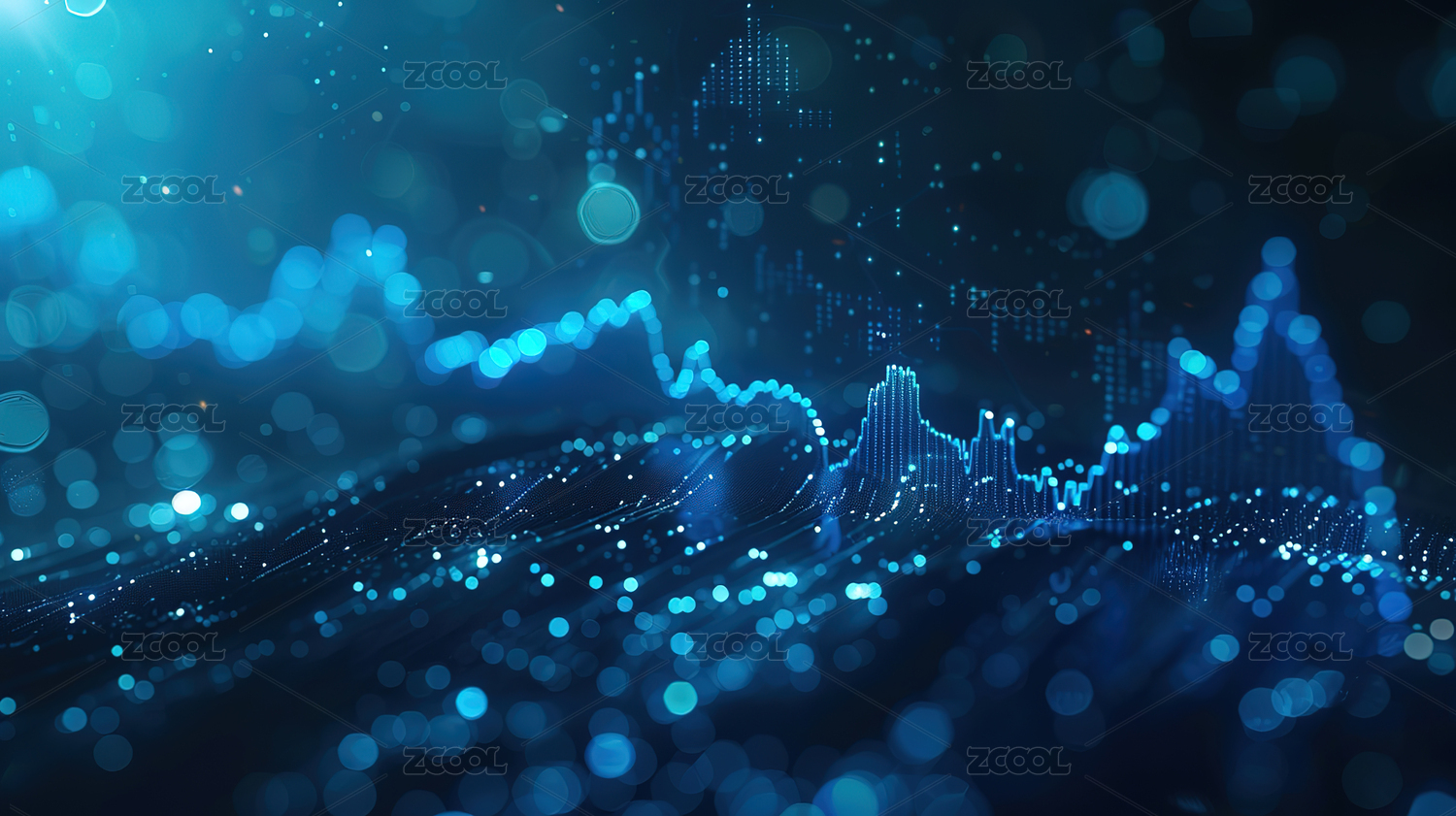 蓝色光效数据柱状走势图背景