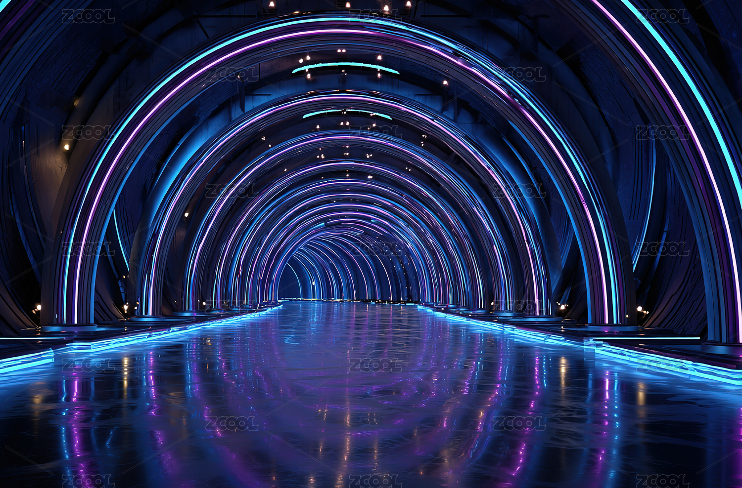 霓虹灯光科幻隧道场景