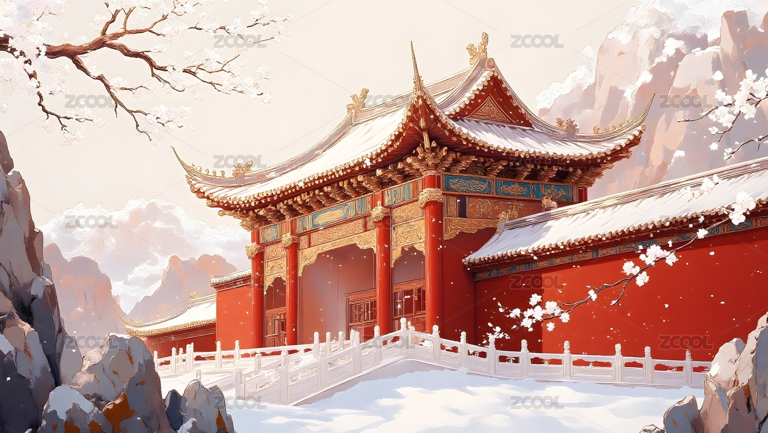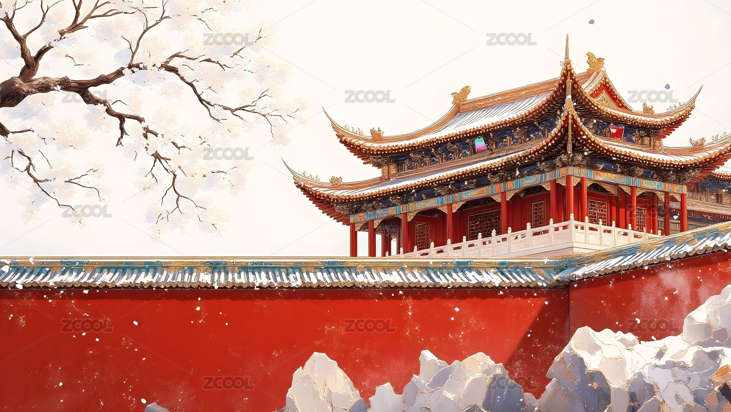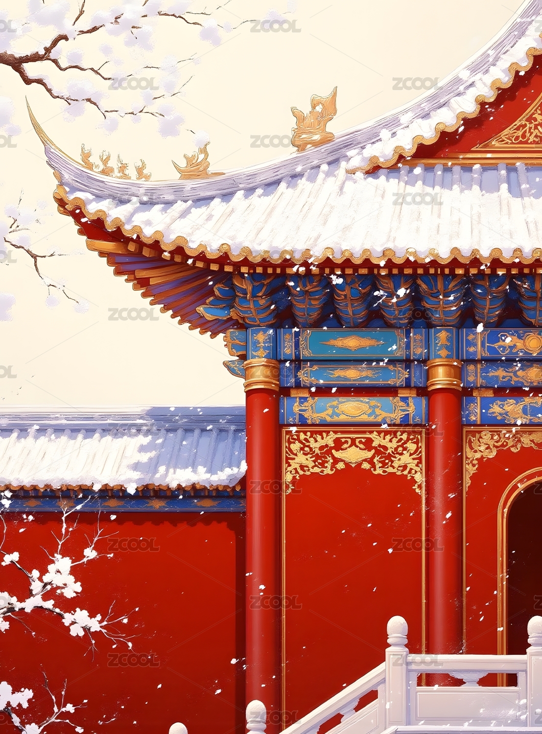 冬季,立冬,雪景,大寒,小寒,节气,古建筑,屋檐,树枝,屋顶