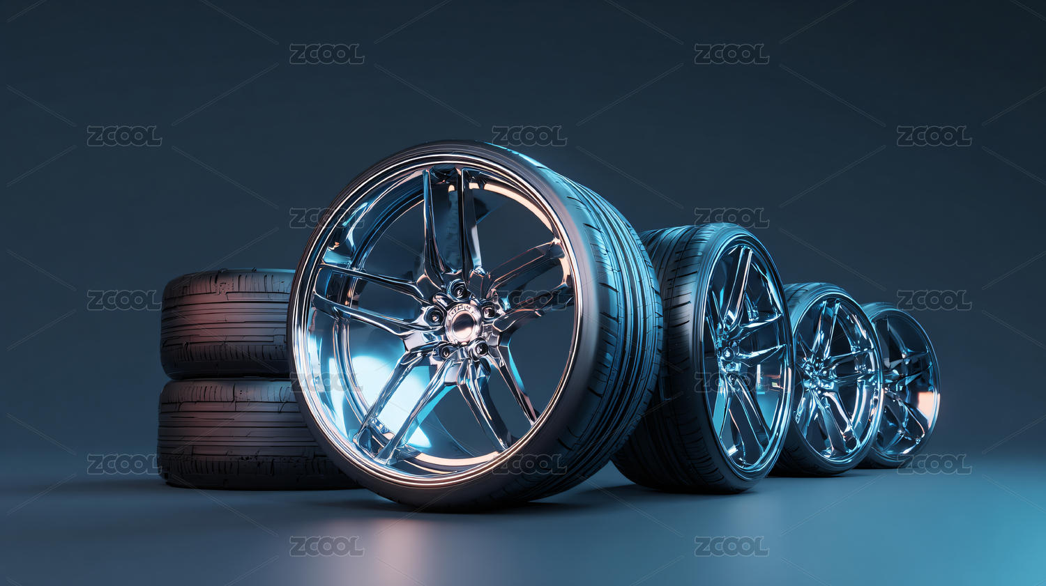 汽车轮毂炫彩汽车配件场景