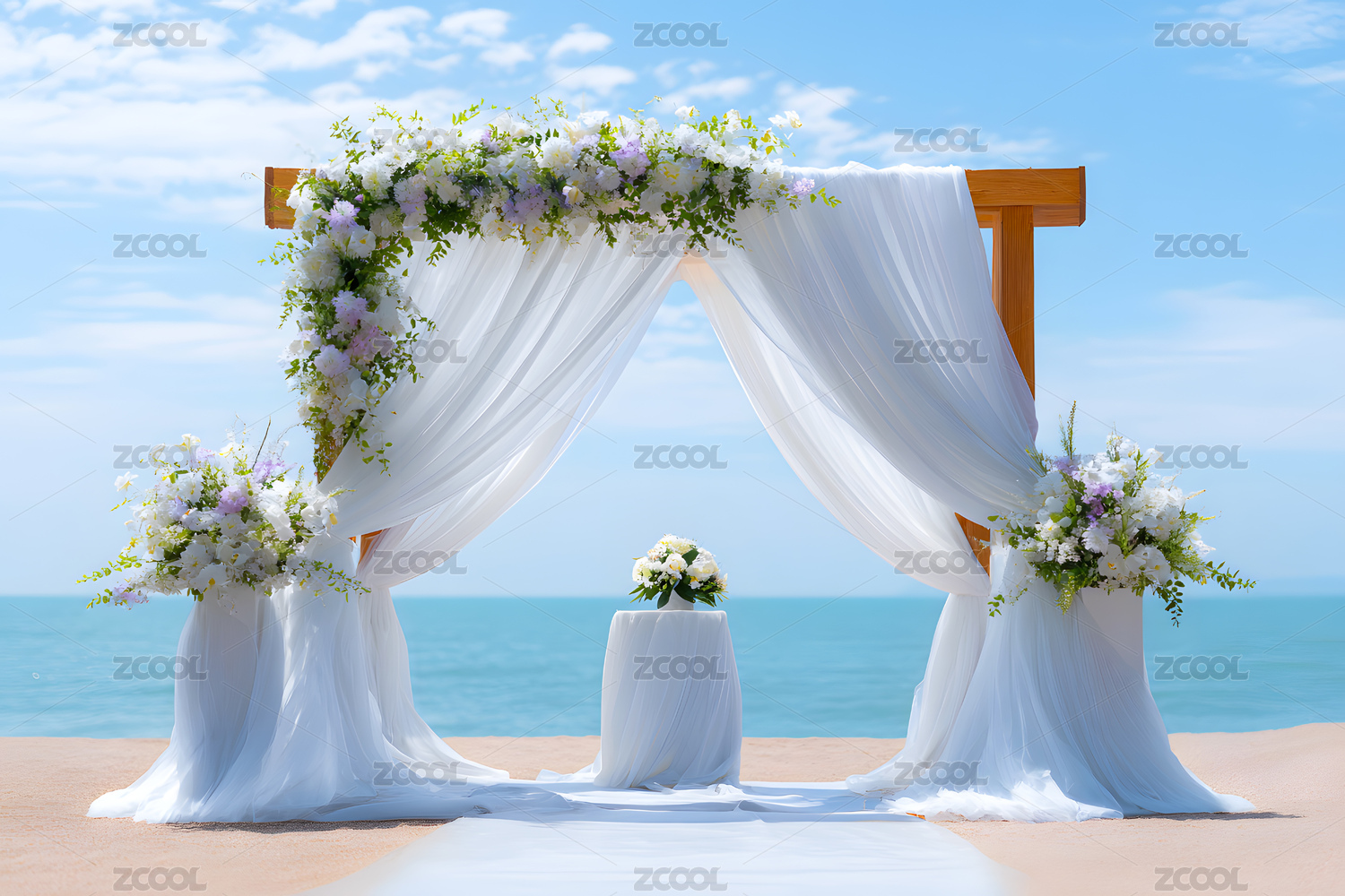 婚礼拱门,紫色花卉,户外,草地,湖泊,插画,装饰,浪漫,唯美,婚礼元素