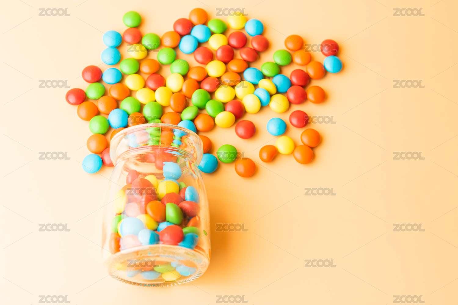 彩色糖果,玻璃瓶,彩虹,背景,创意,插画,美食,糖果,手绘,玻璃