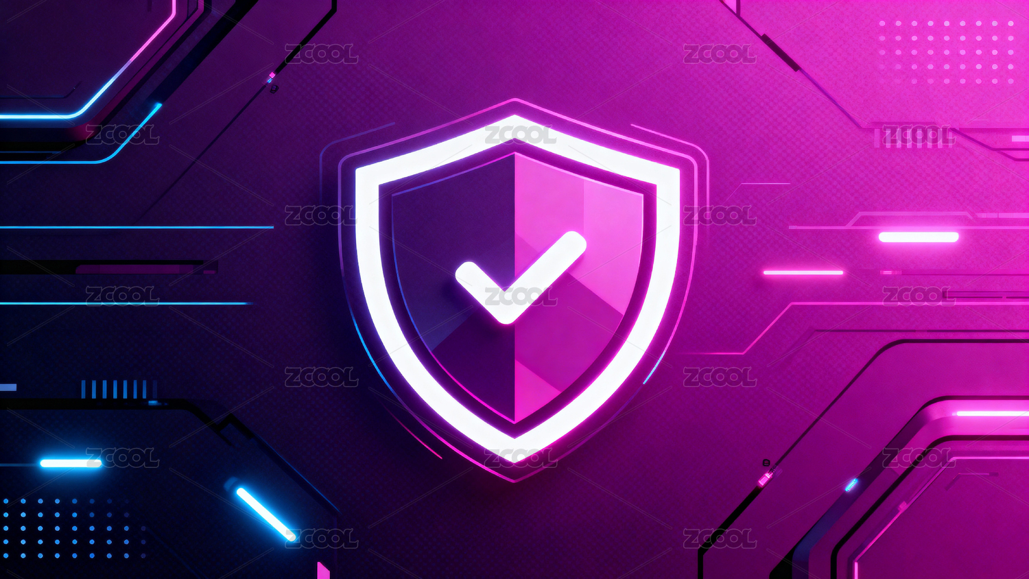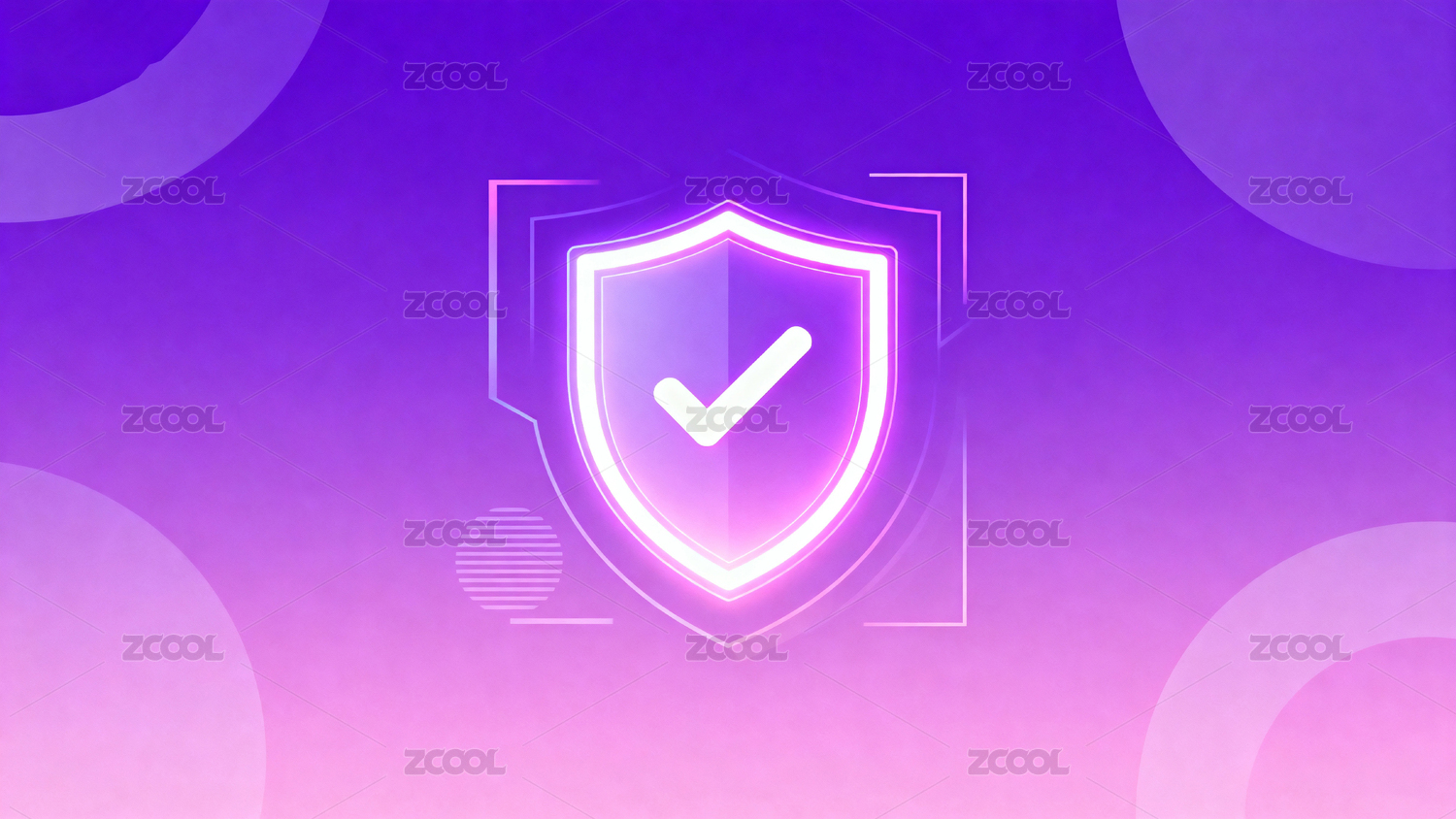 紫色背景上的发光盾牌与对勾图标