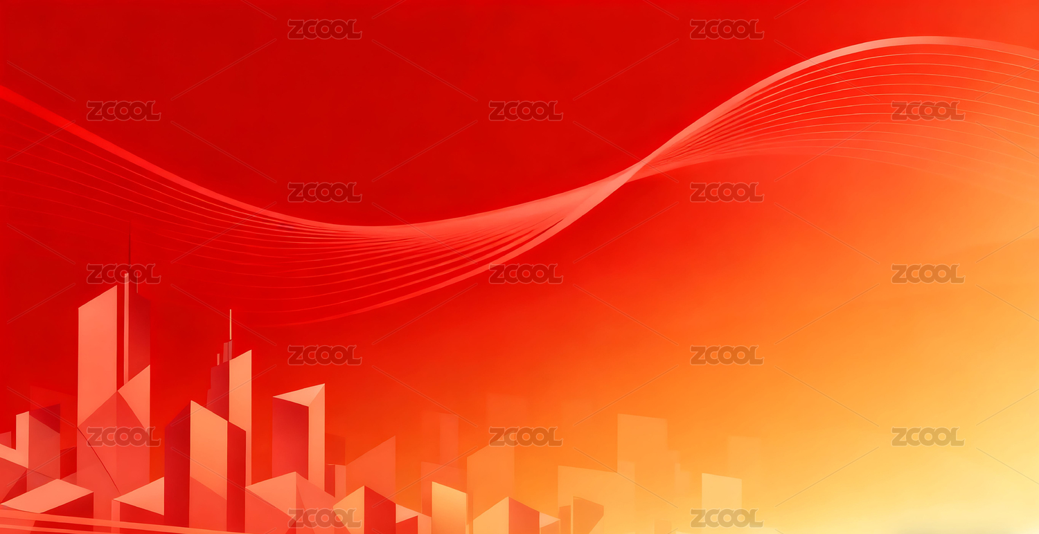 流畅的红金色渐变波浪线条玻璃城市建筑