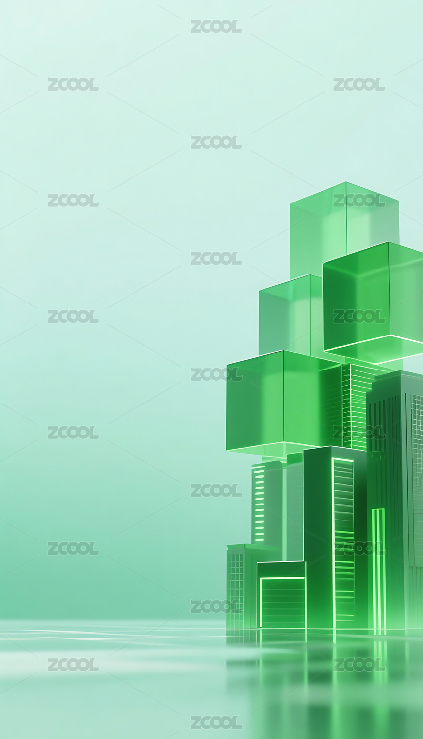 绿色科技几何方块玻璃质感城市建筑