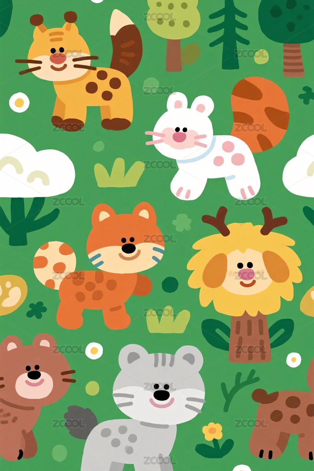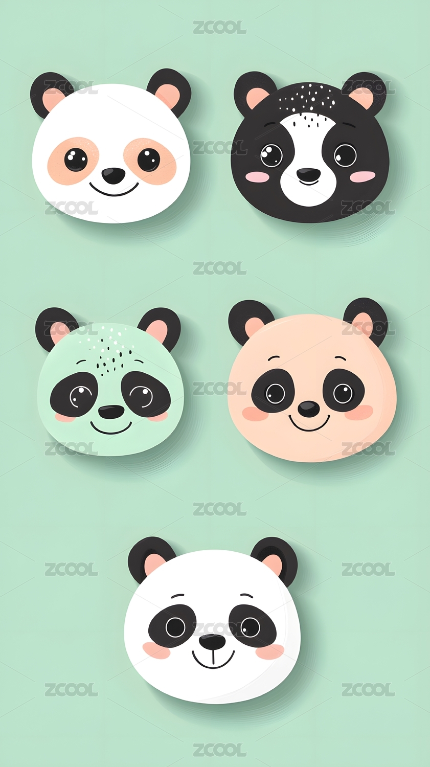 熊猫,小狗,小猫,兔子,狮子,小猪,小熊,小牛,卡通,插画