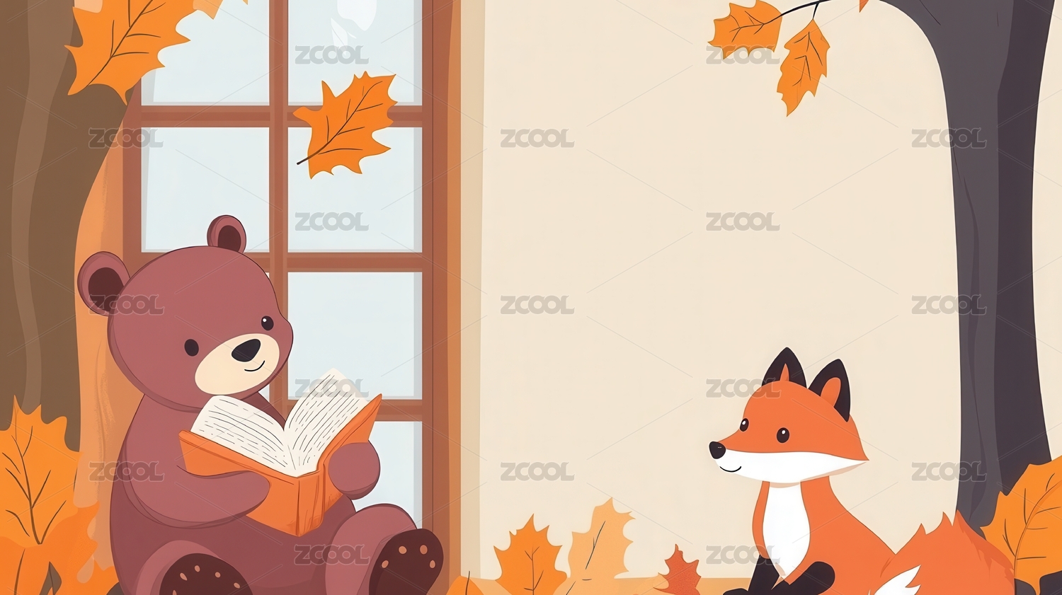 秋天立秋秋分动物宠物萌宠卡通漫画插画