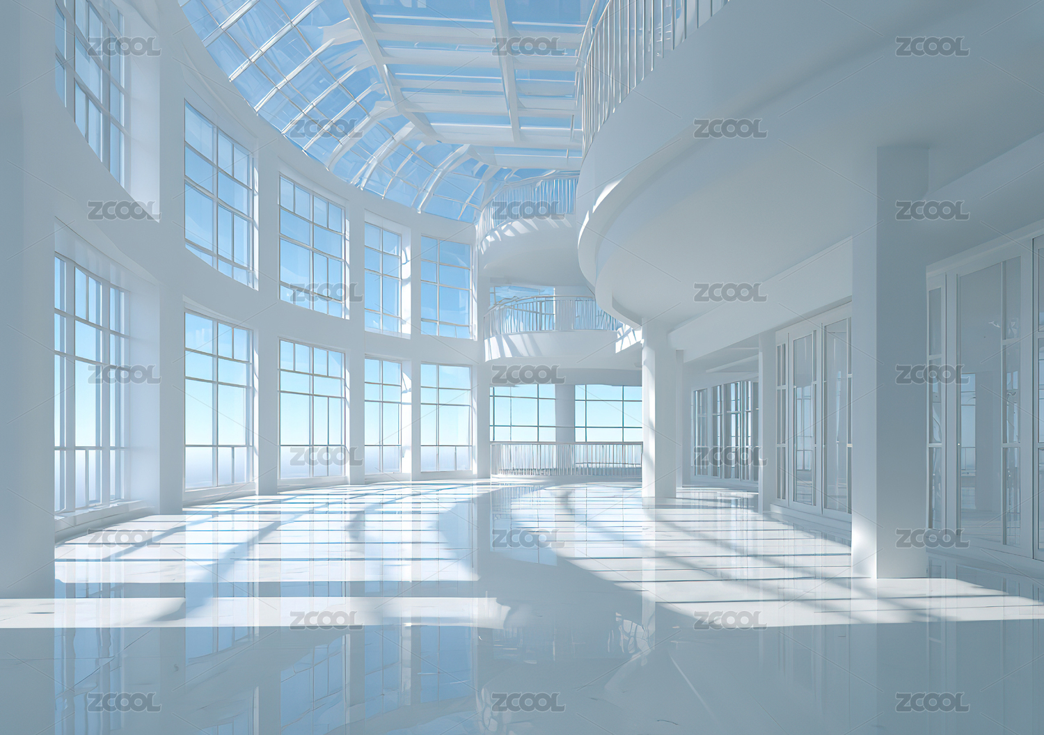 白色,现代,空间,简洁,反射,建筑,光线,透明,室内,阳光