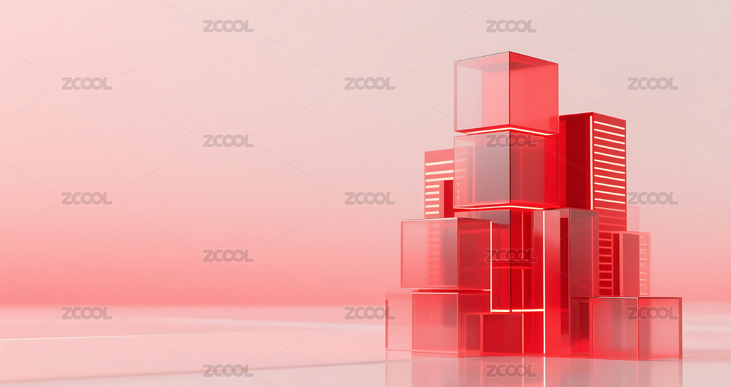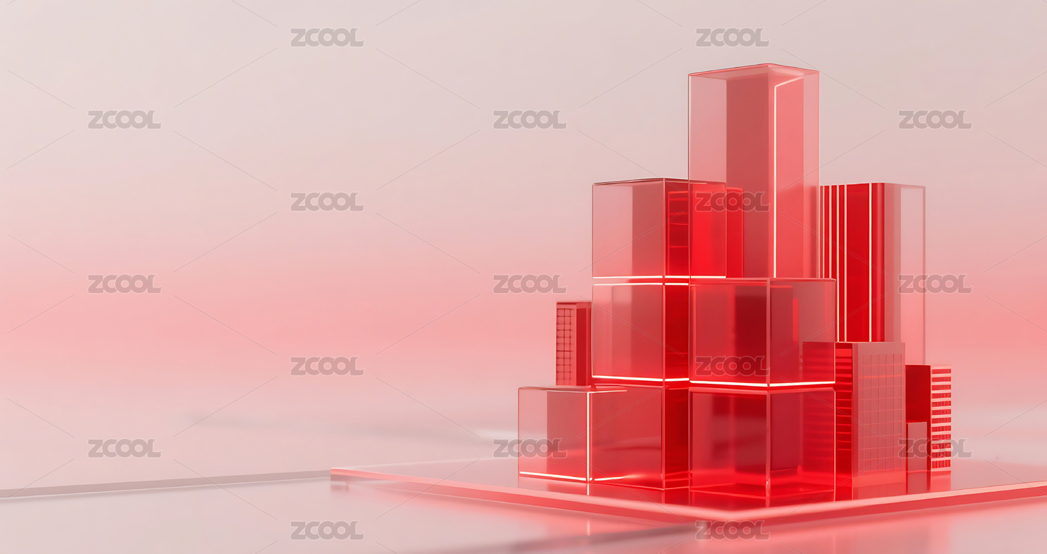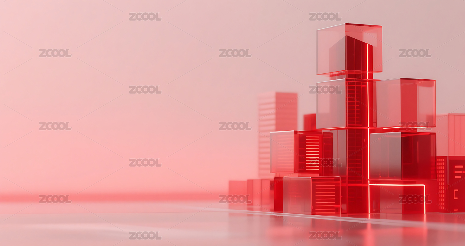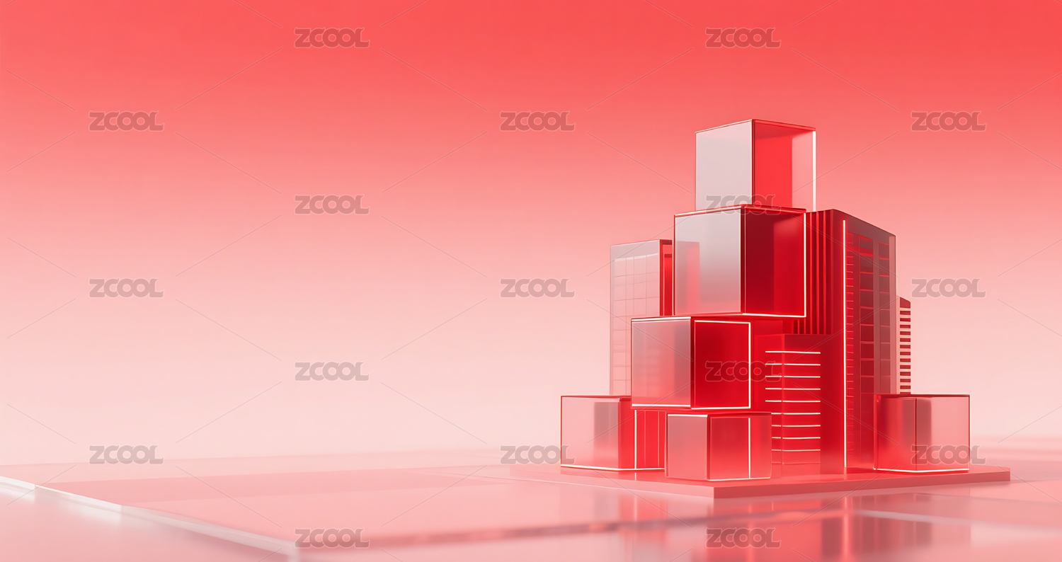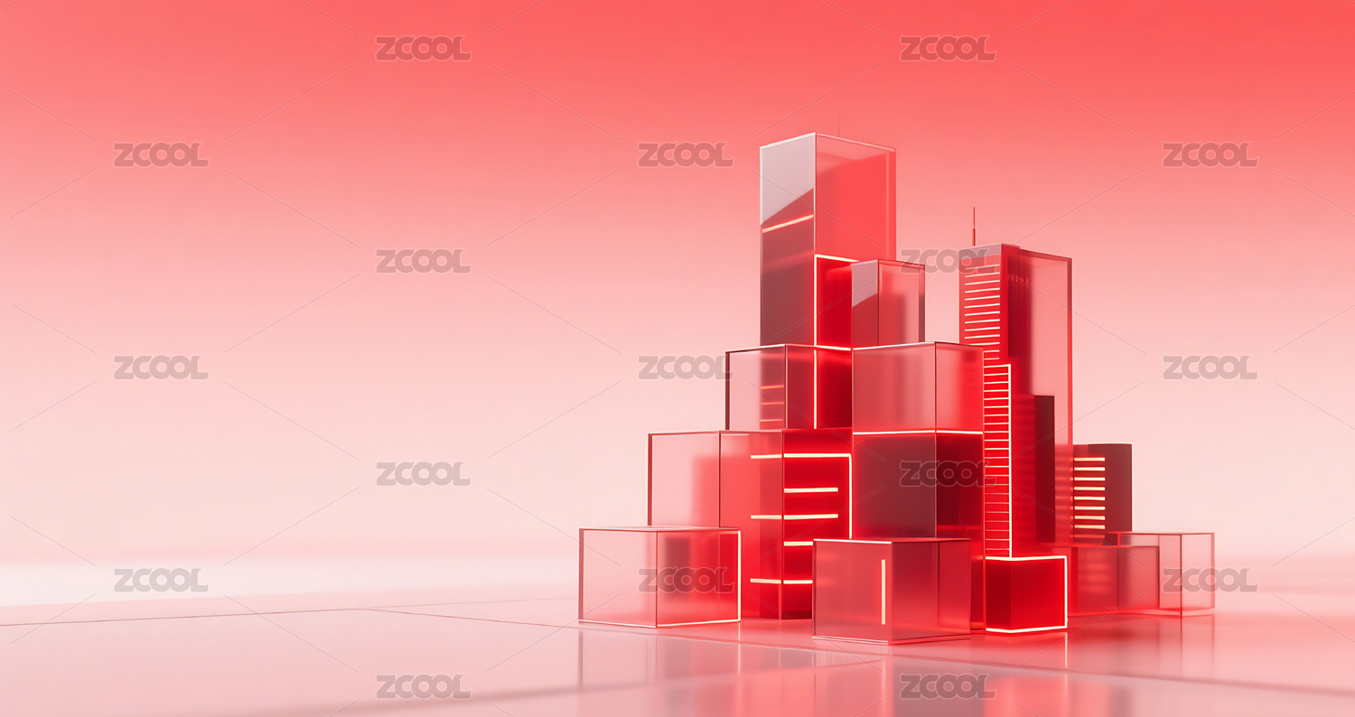 红色科技几何方块玻璃质感城市建筑