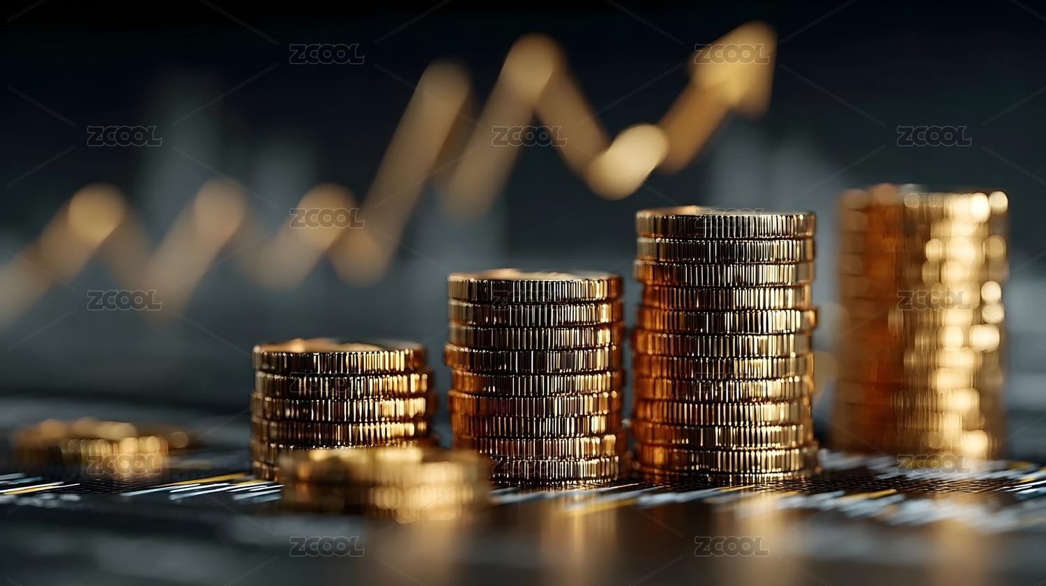 箭头,金色,向上,指向,金币,蓝色,背景,股市,增长,财务